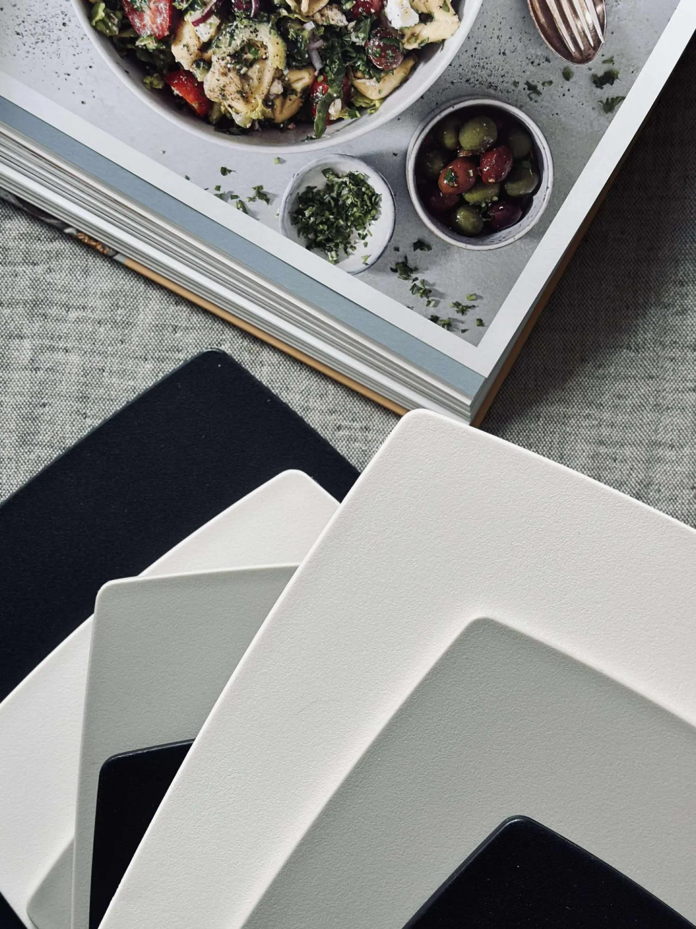 Sæt med 3 skærebrætter i plast i 3 størrelser og farver.