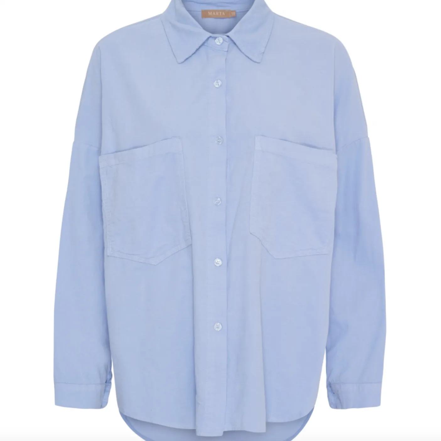 Klassisk og fin skjorte fra Marta Du Château i baby fløjl. Onesize med brystmål 62 cm og længde 82 cm. En alsidig overdel med et roligt, klassisk præg der passer til flere lejligheder.