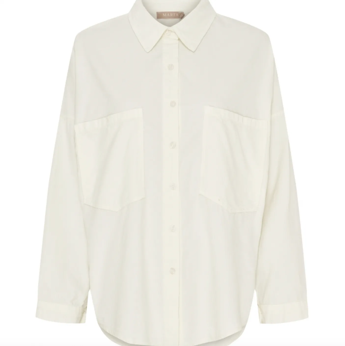Klassisk og fin skjorte fra Marta Du Château i baby fløjl. Skjorten har gennemgående knapper, to brystlommer og krave. Den er super alsidig og kan både styles med et par jeans og bukser fra samme serie.