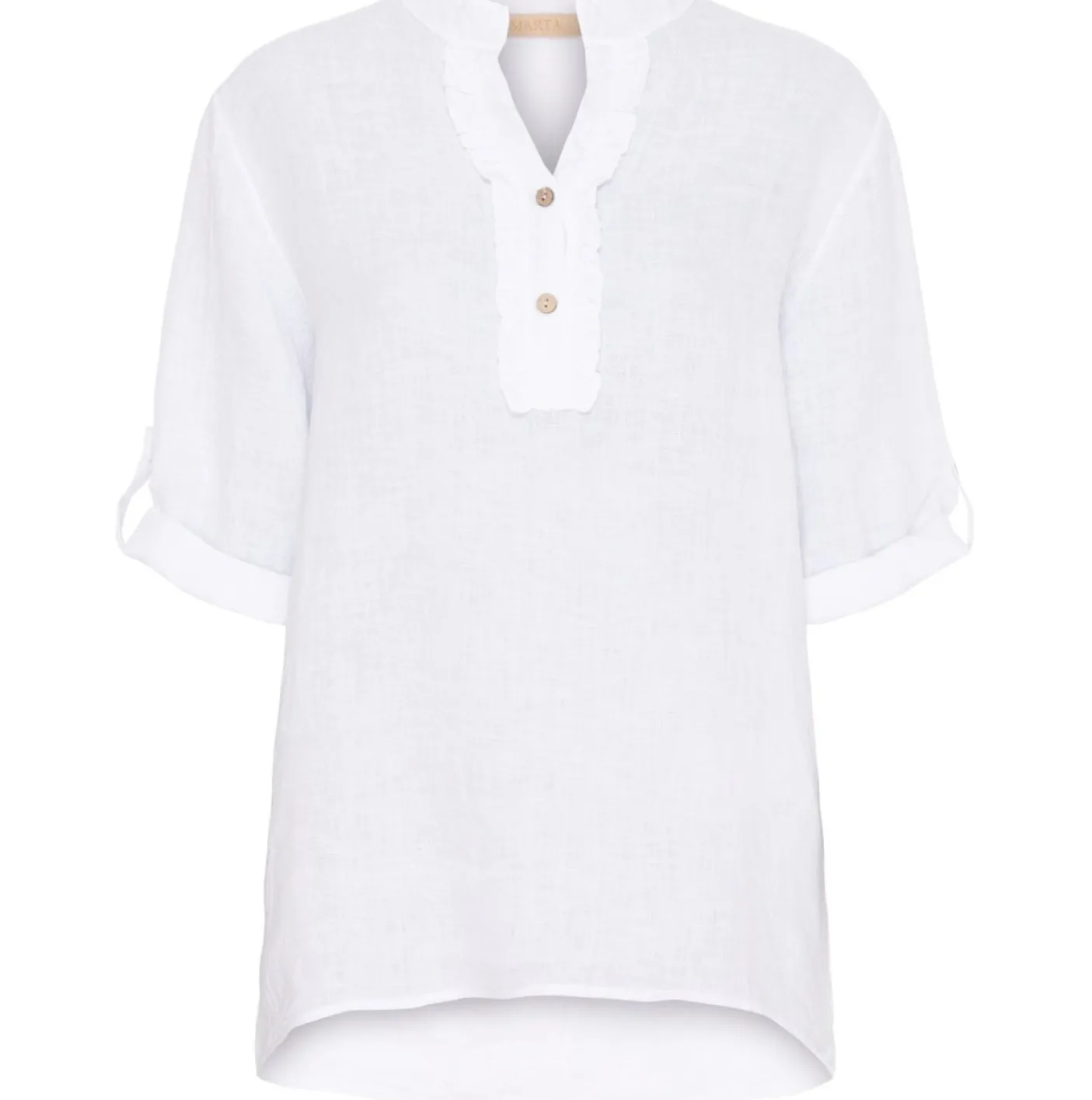 Sød hør skjortebluse med knapper foran samt flæse detalje.