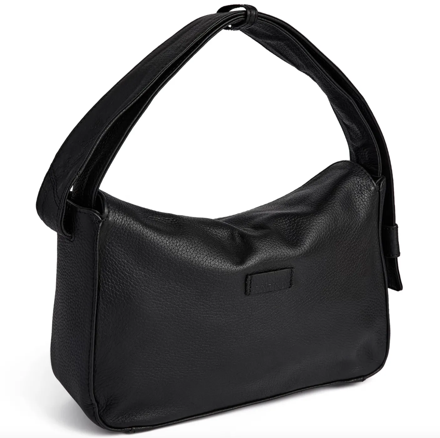 Denne skuldertaske forener klassisk elegance med et moderne og feminint udtryk. Det enkle design får et løft af de fine bindebåndsdetaljer i siderne, som tilfører et blødt og eksklusivt touch.
