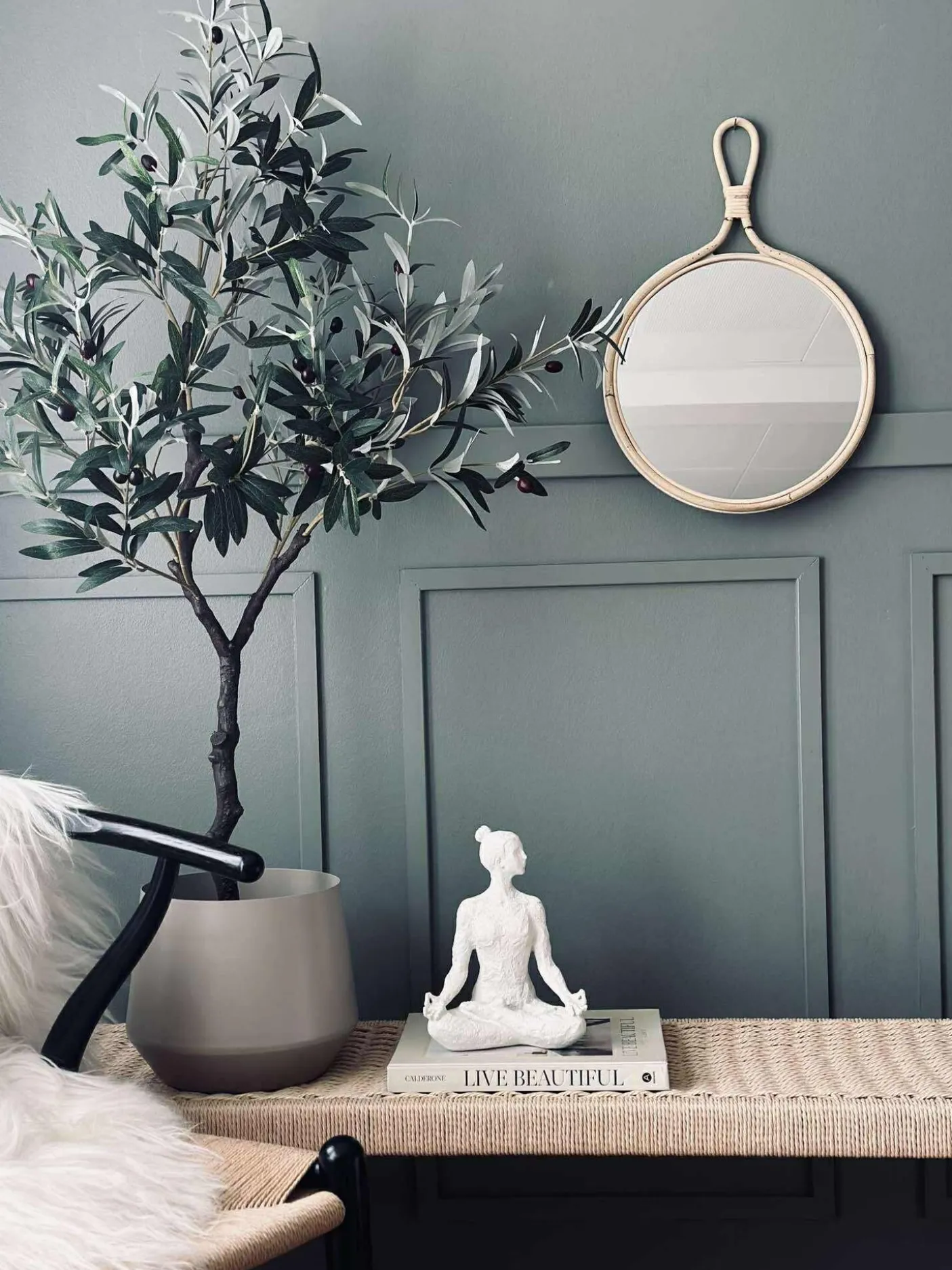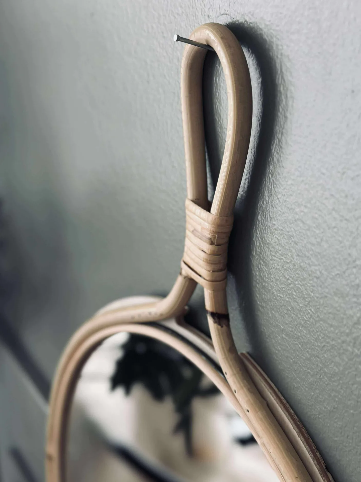 Spejl til dekoration med ramme og håndtag i natur rattan.