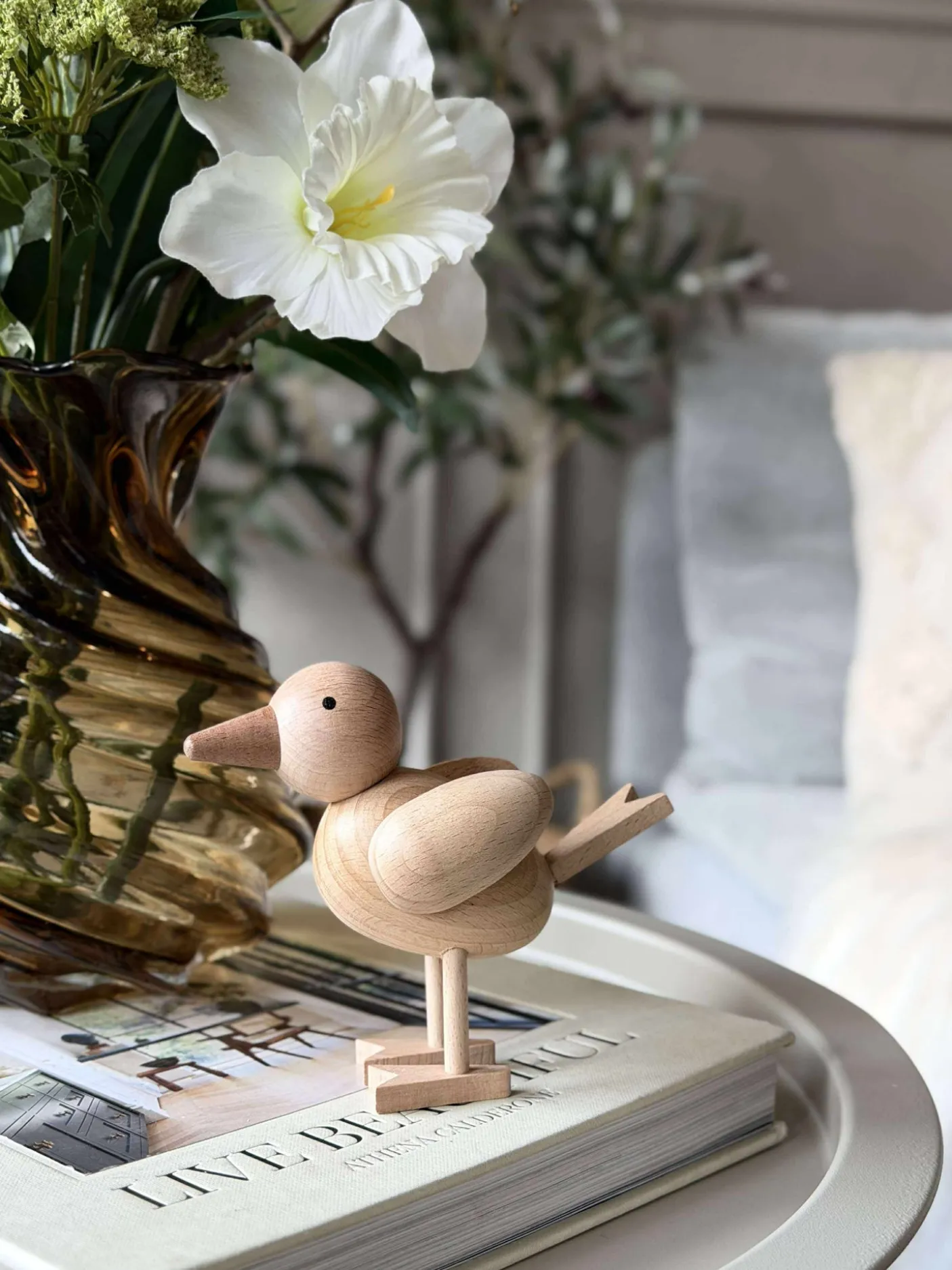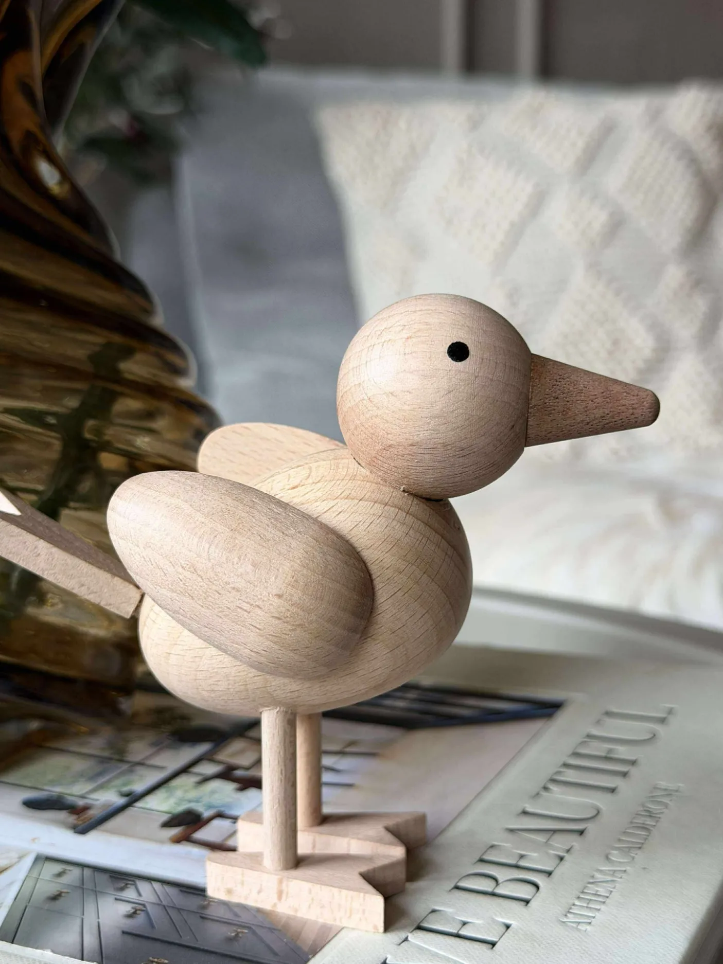 Træfiguren fugl er skabt af ægte bøgetræ i naturfarve, hvilket giver en varm og indbydende atmosfære til ethvert rum. Det naturlige materiale tilføjer en autentisk og tidløs charme, der komplementerer forskellige indretningsstile. Bøgetræets robusthed sikrer langvarig holdbarhed, mens den naturlige farve fremhæver træets unikke åretegninger og tekstur, hvilket gør hver figur til et individuelt kunstværk.