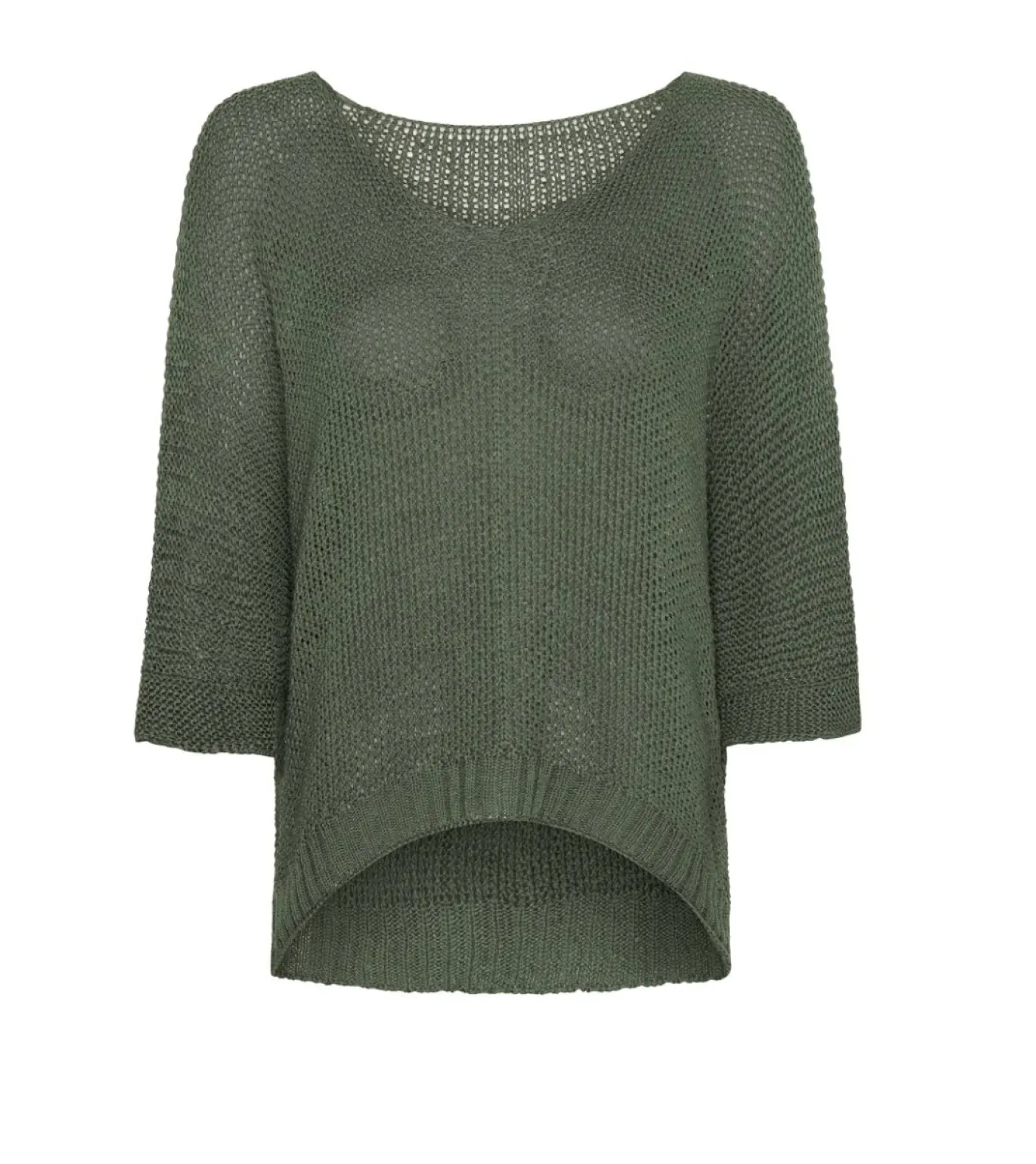 Lækker Oliven strik med rund hals og loose fit-ærmer.