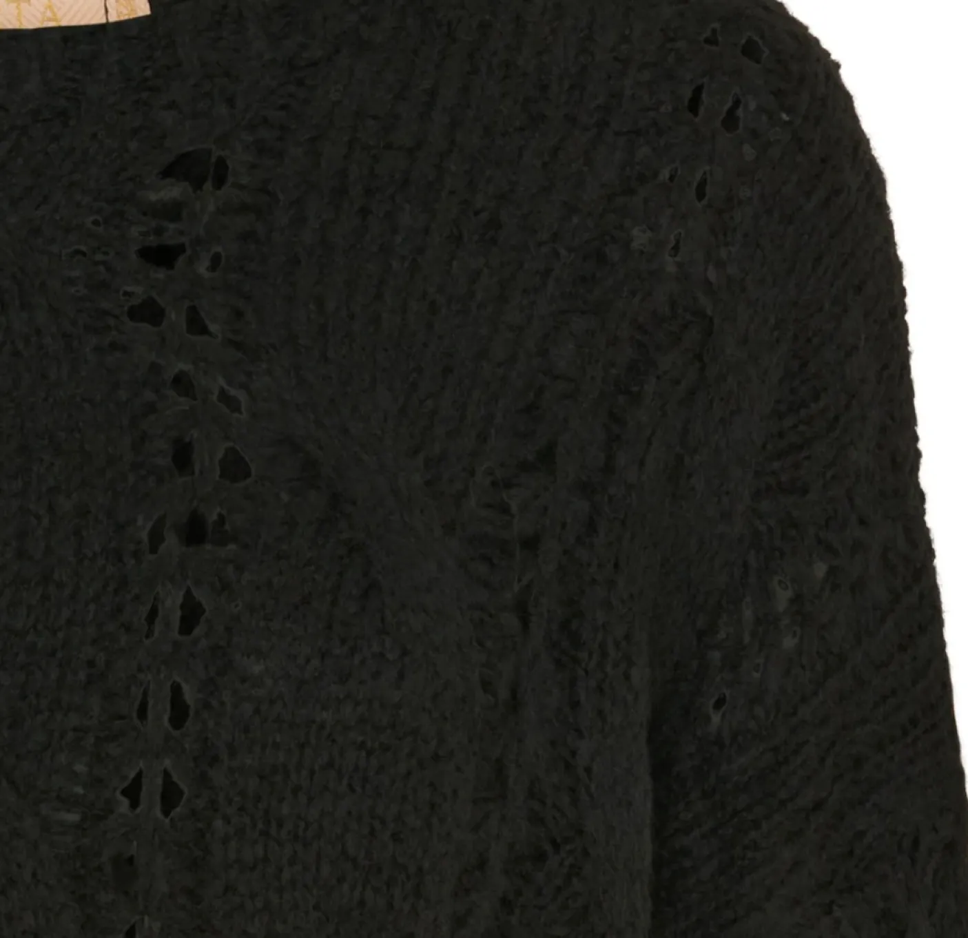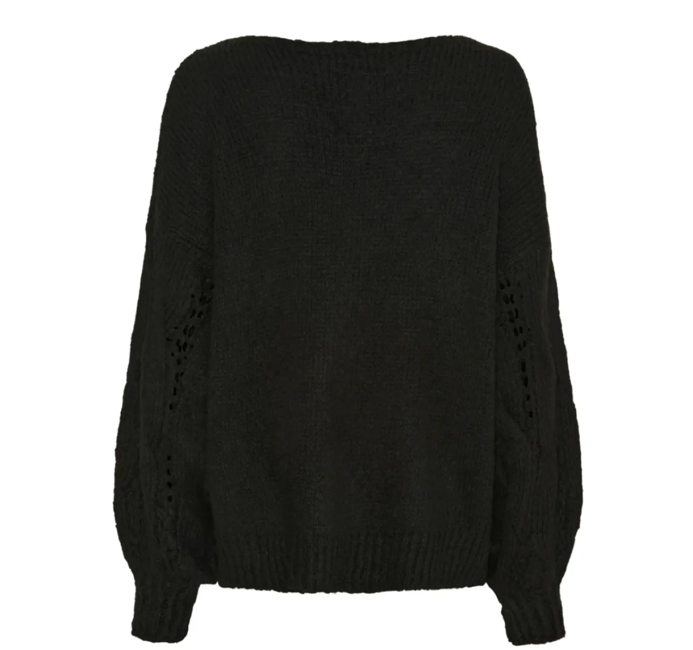 Super skøn strik i onesize. En blød overdel til garderoben med et dekorativt snit. Materiale: 52% akryl, 22% polyester, 18% lana-uld og 8% viskose.