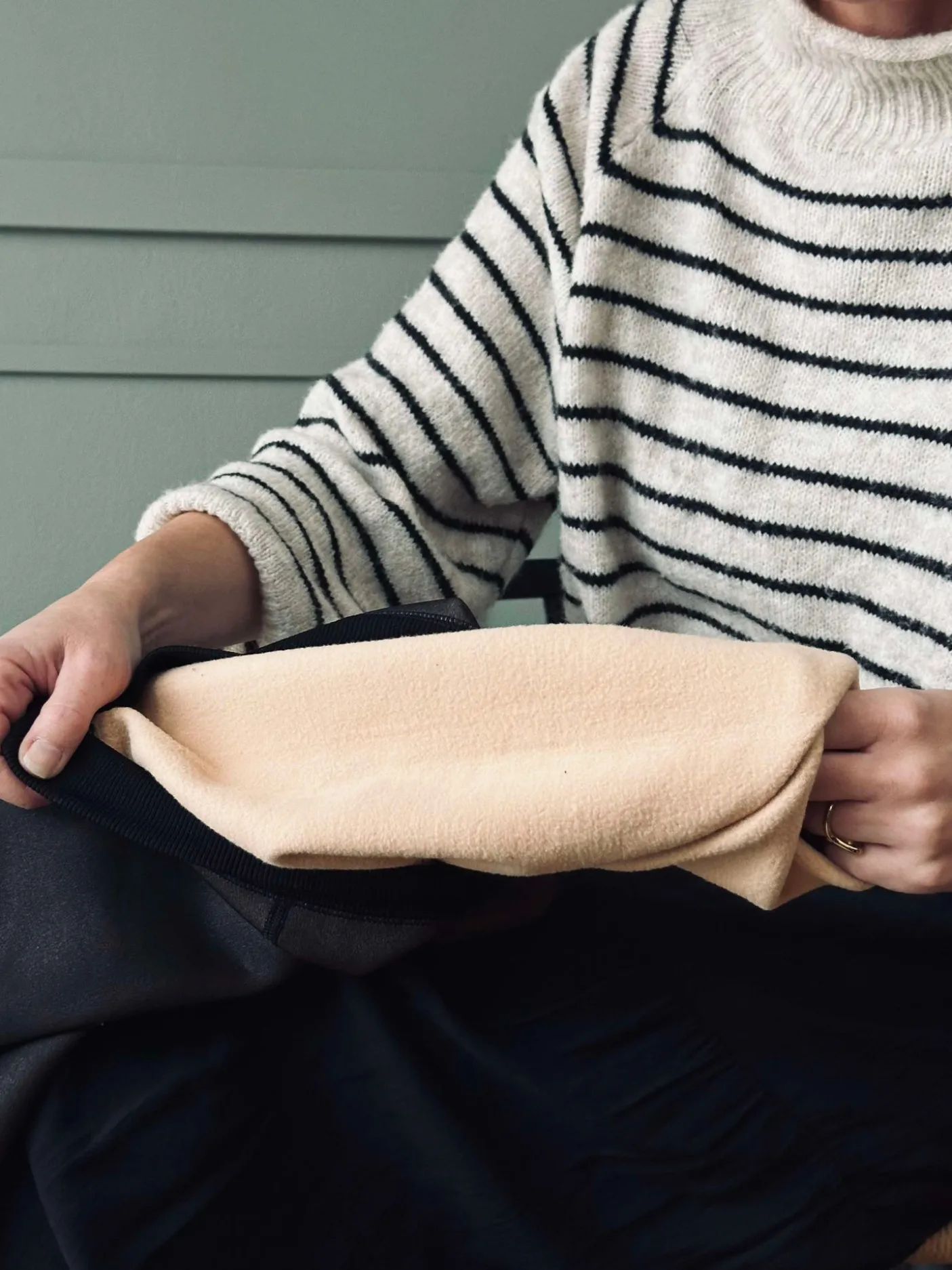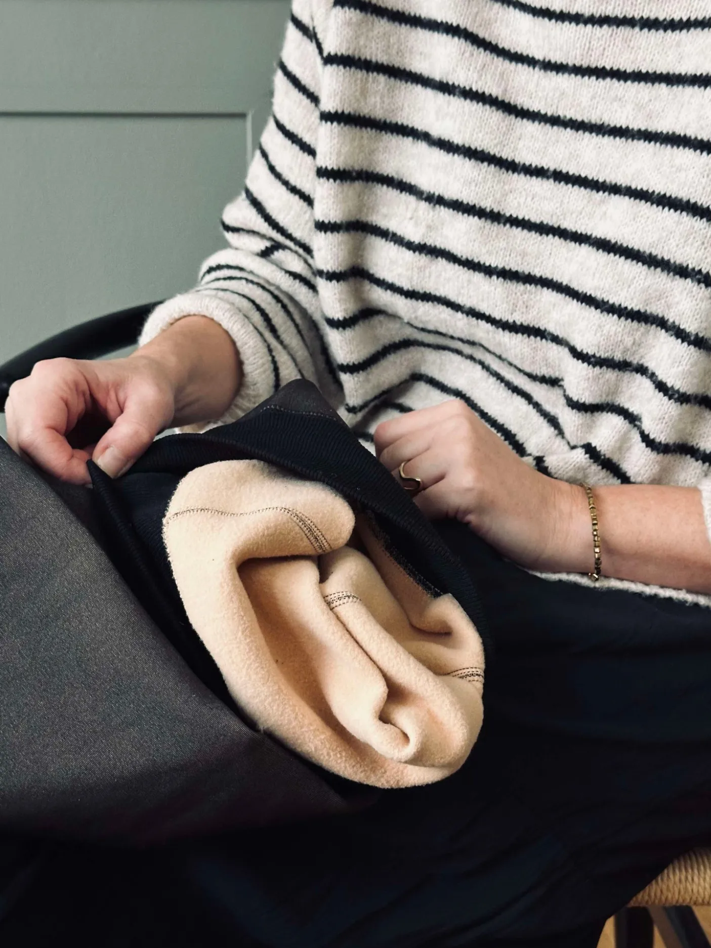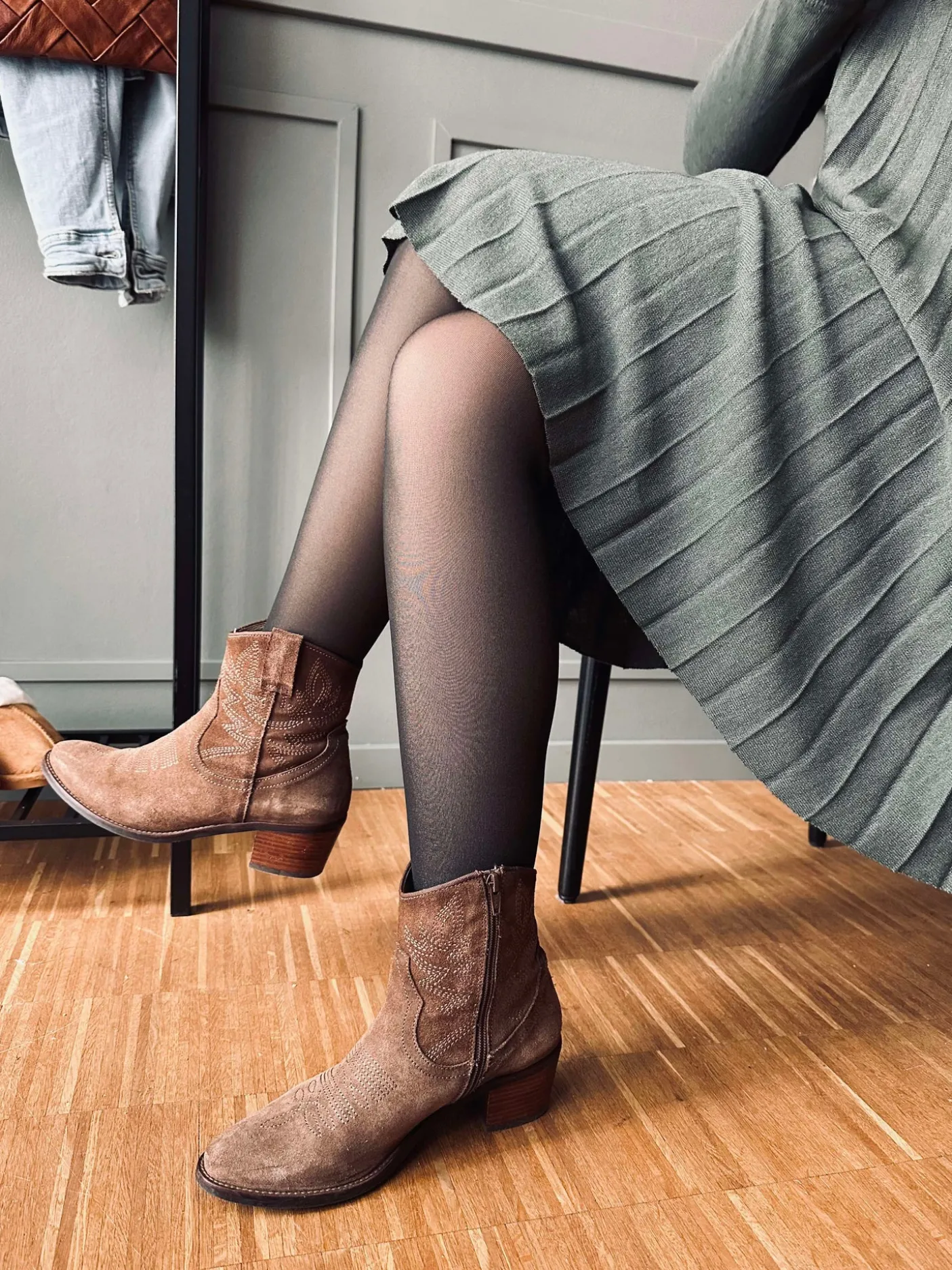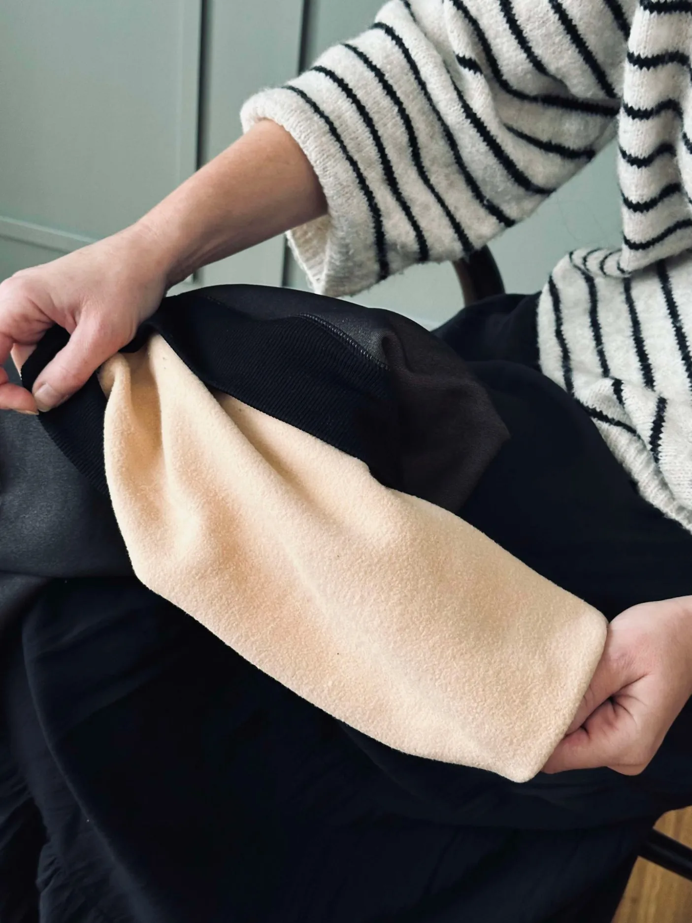 Strømpebukserne har et foret indre, som adskiller dem fra klassiske nylonstrømper i udtrykket.