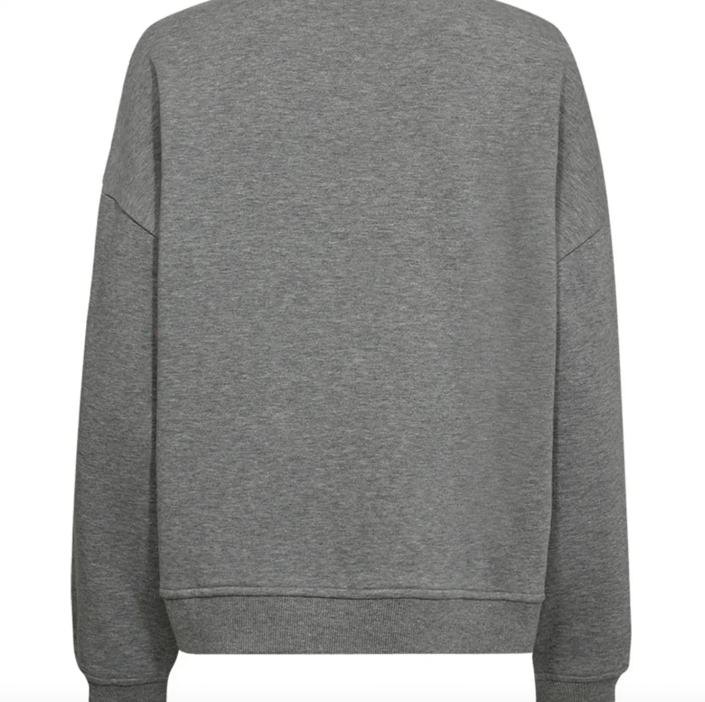 Ribkanterne ved ærmer, hals og nederst sikrer en god pasform og komfort hele dagen. Sweatshirten kan med fordel styles med en skindnederdel eller et par skindbukser for et cool og moderne look. Ideel til både hverdag og mere casual lejligheder, hvor du ønsker at tilføje lidt ekstra glans til din påklædning.