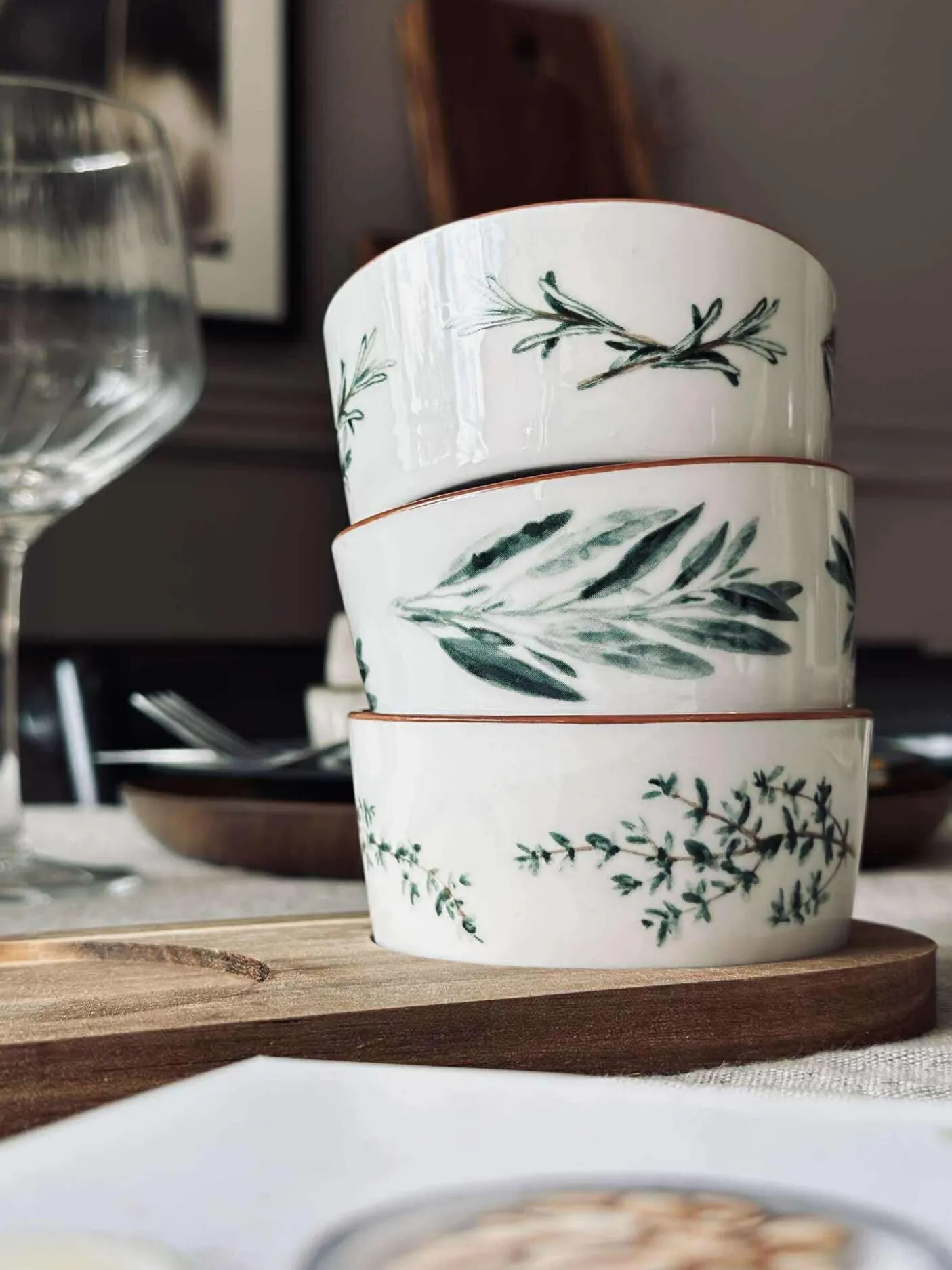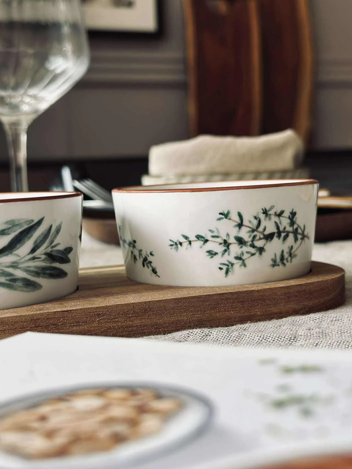 De små skåle er velegnede til dip, oliven, nødder og andre små anretninger, mens fadet samler det hele og giver et roligt udtryk på bordet.