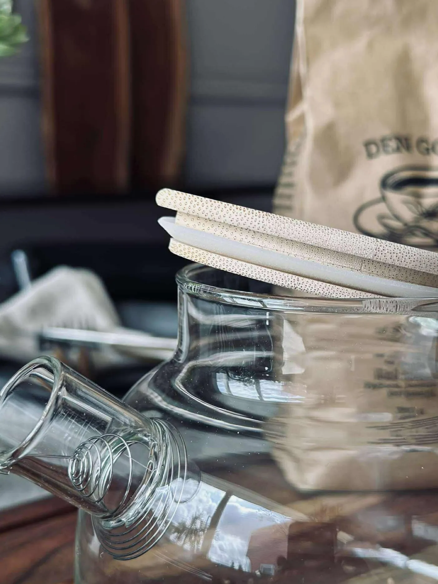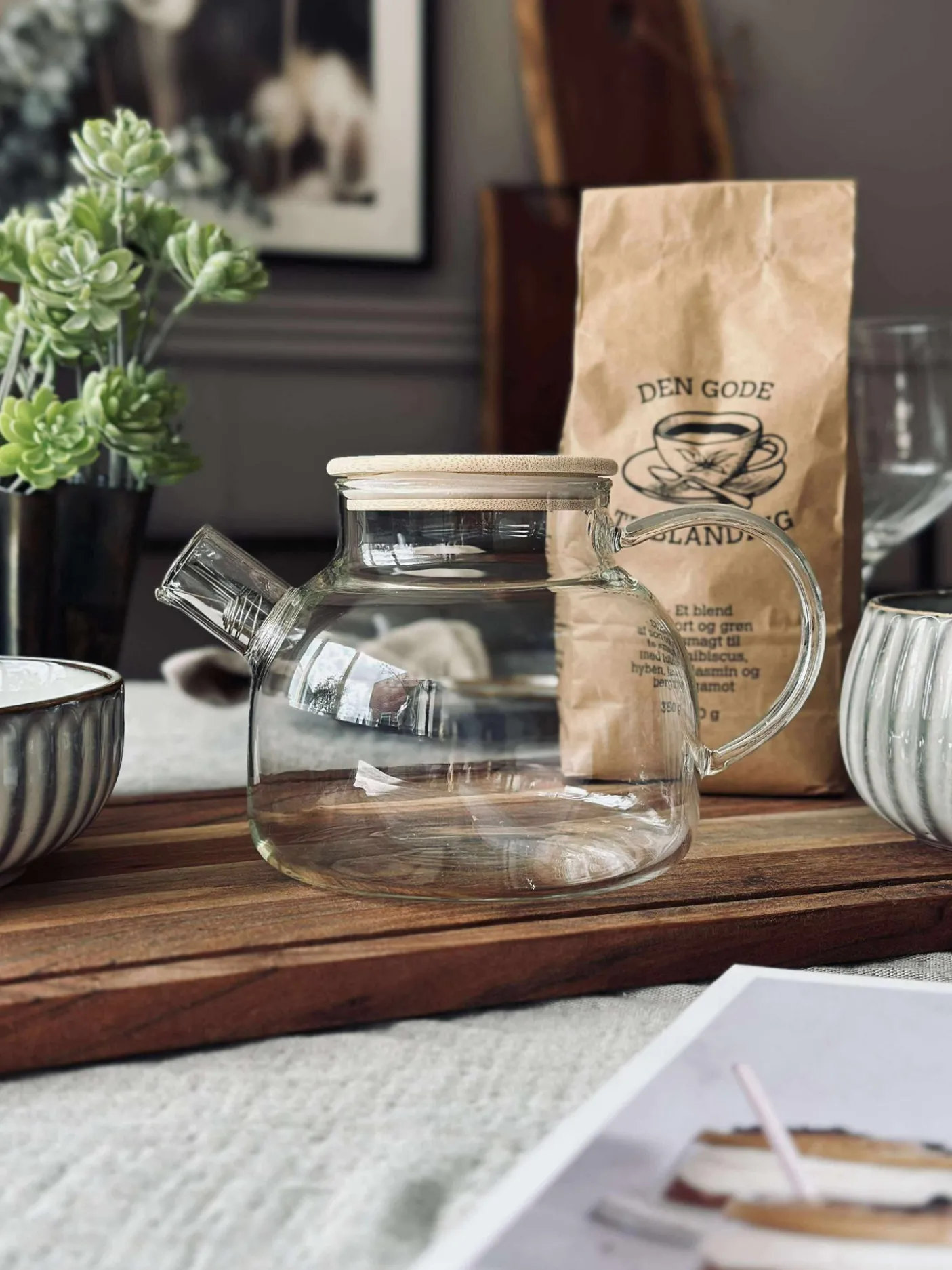 Tekande i glas med låg i bambus.