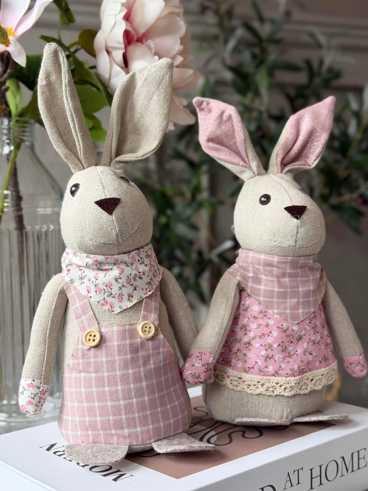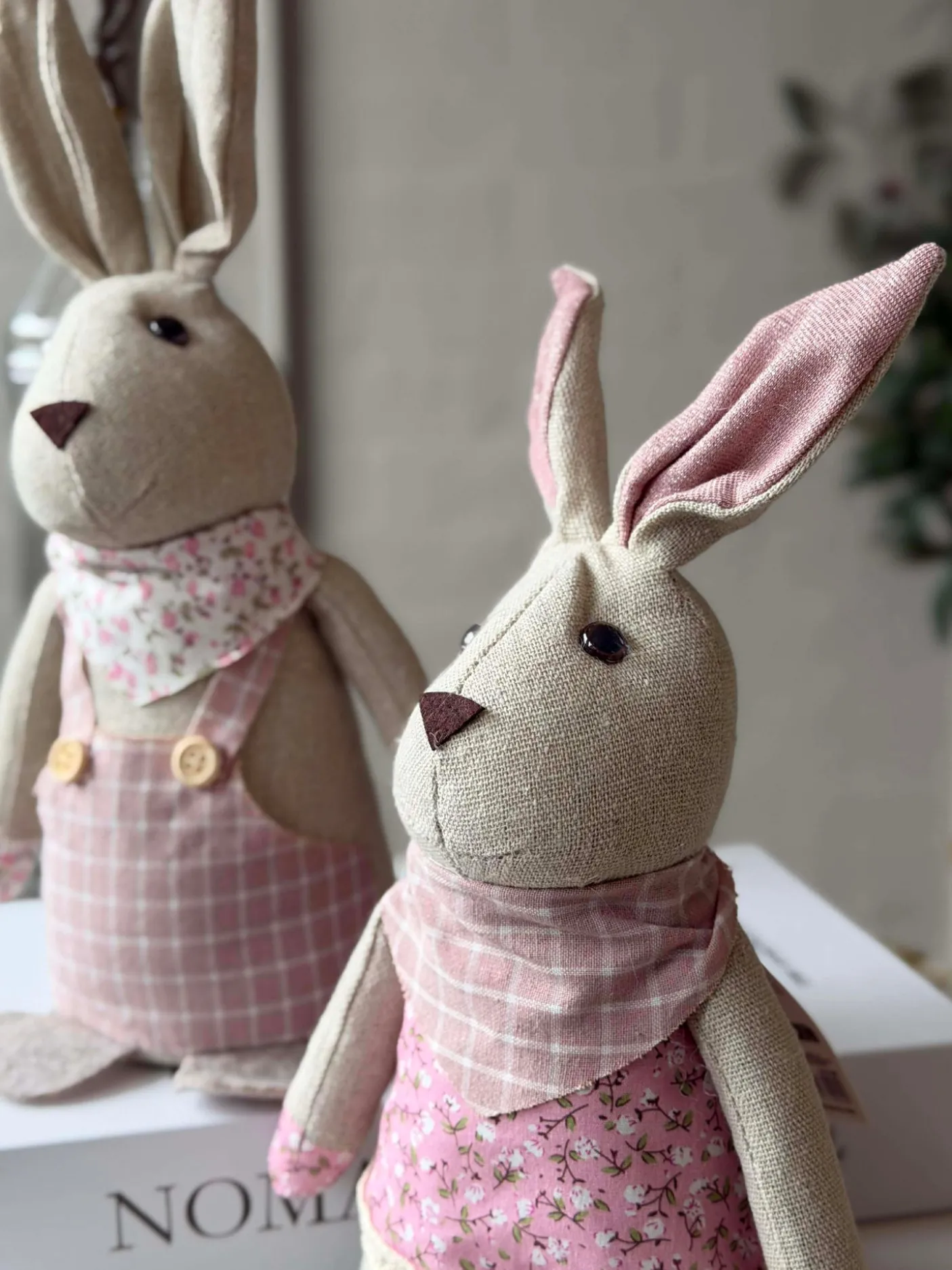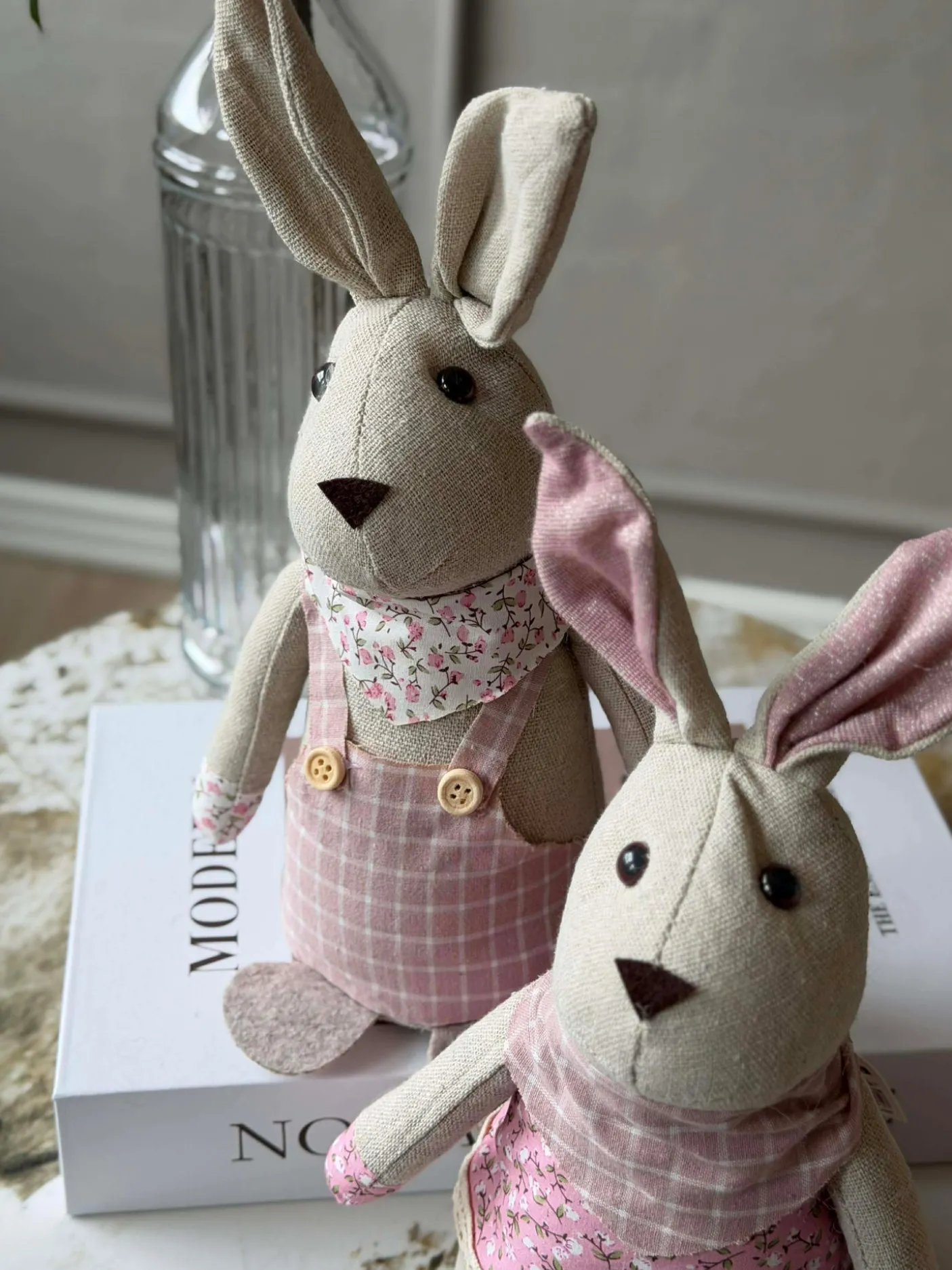 Tøjkanin 27 cm – MIX er en dekorativ stofkanin, der giver et hyggeligt og charmerende udtryk i indretningen uden at fylde for meget. Den leveres i en assorteret blanding af farver, så hver kanin bidrager med sit eget lille præg.