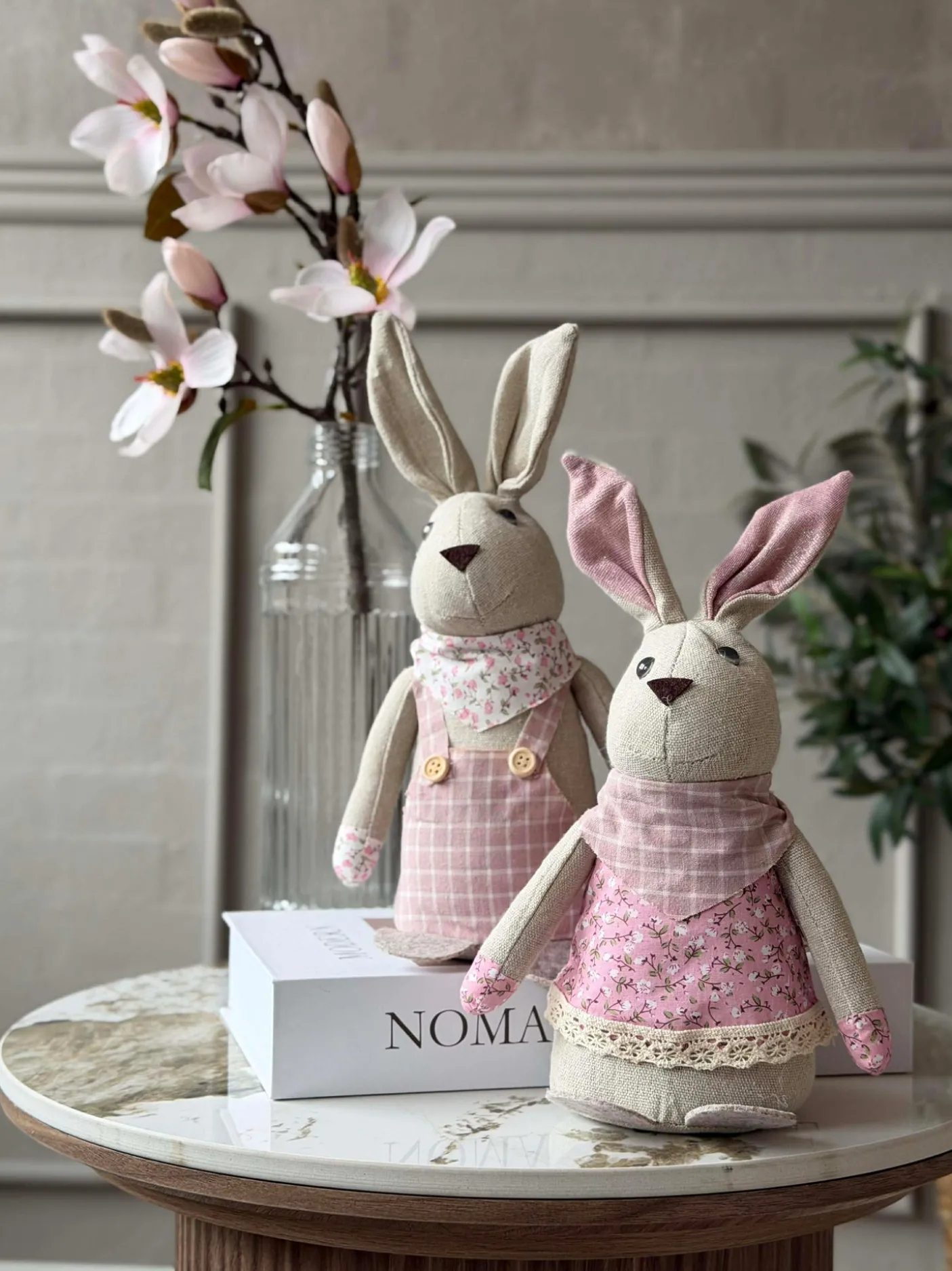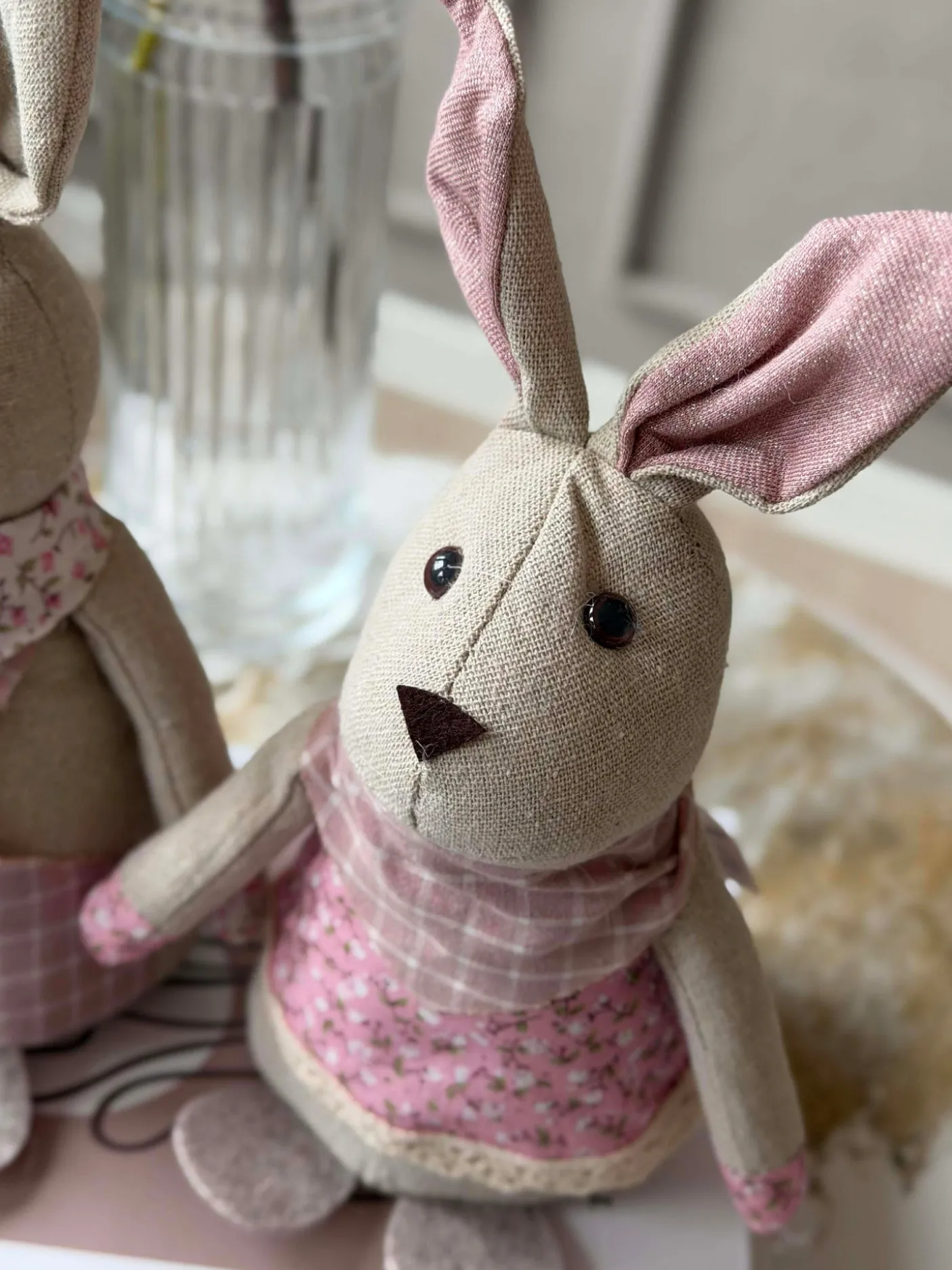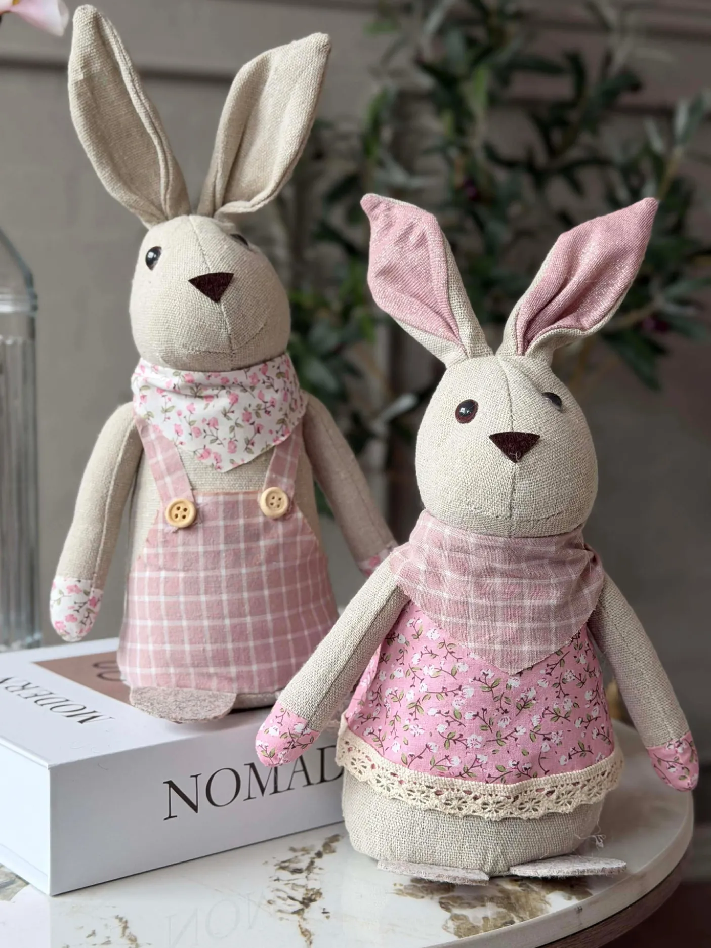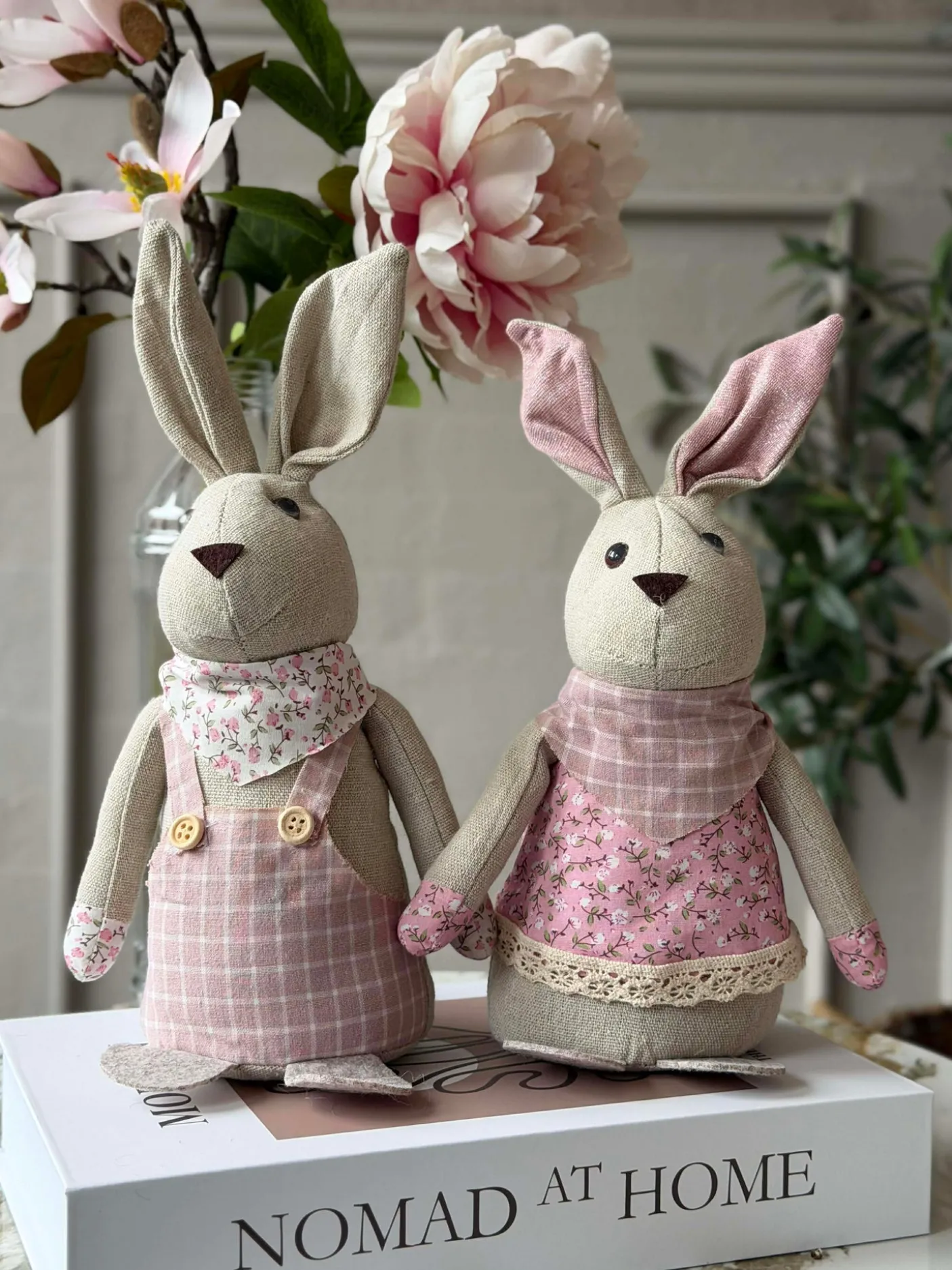 Tøjkanin 27 cm – MIX er en dekorativ stofkanin, der giver et hyggeligt og charmerende udtryk i indretningen uden at fylde for meget. Den leveres i en assorteret blanding af farver, så hver kanin bidrager med sit eget lille præg.