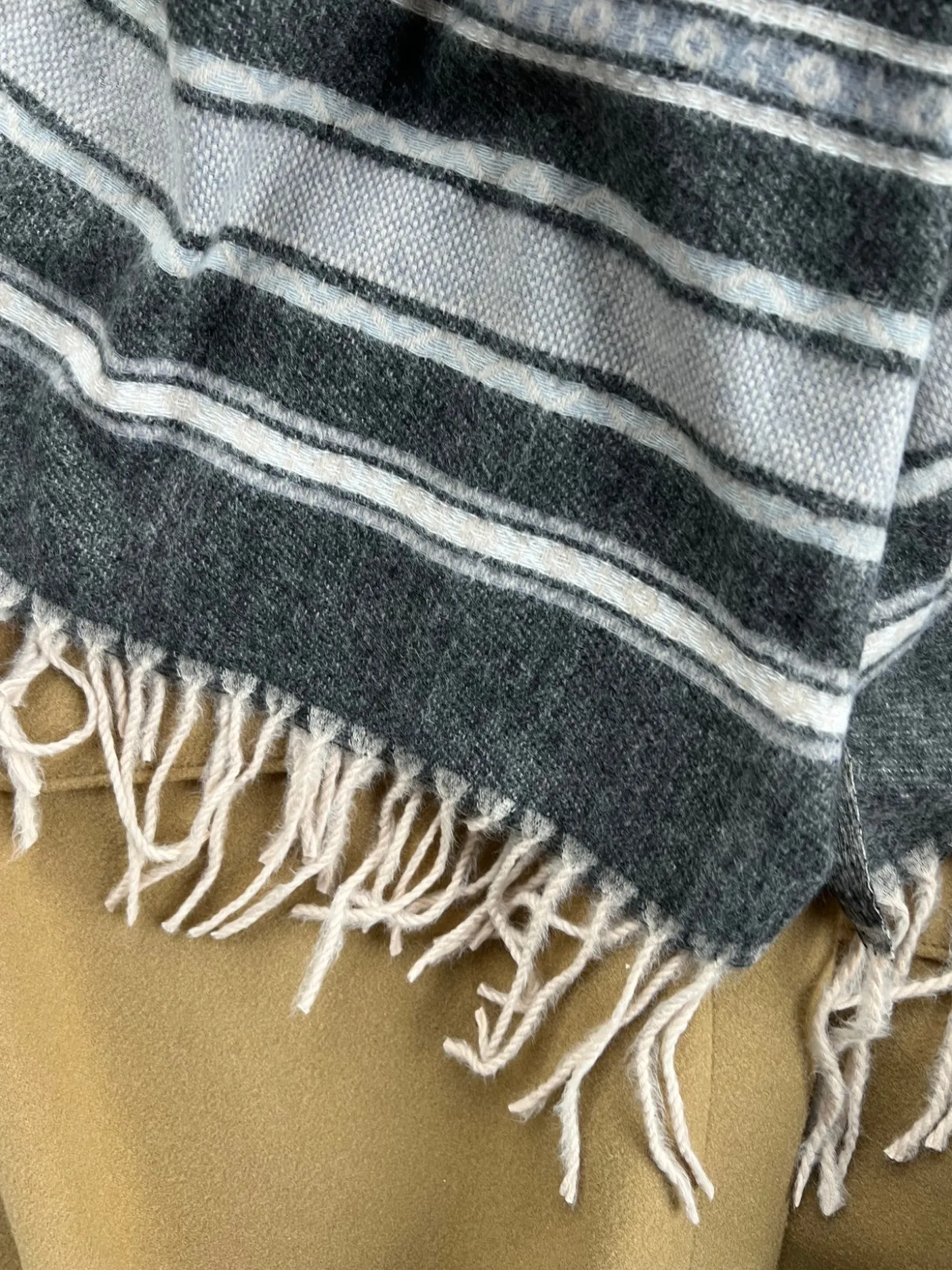 Tørklædet er lavet af 80% viscose og 20% uld og er en behagelig accessory, når du ønsker et varmt lag på kølige dage.