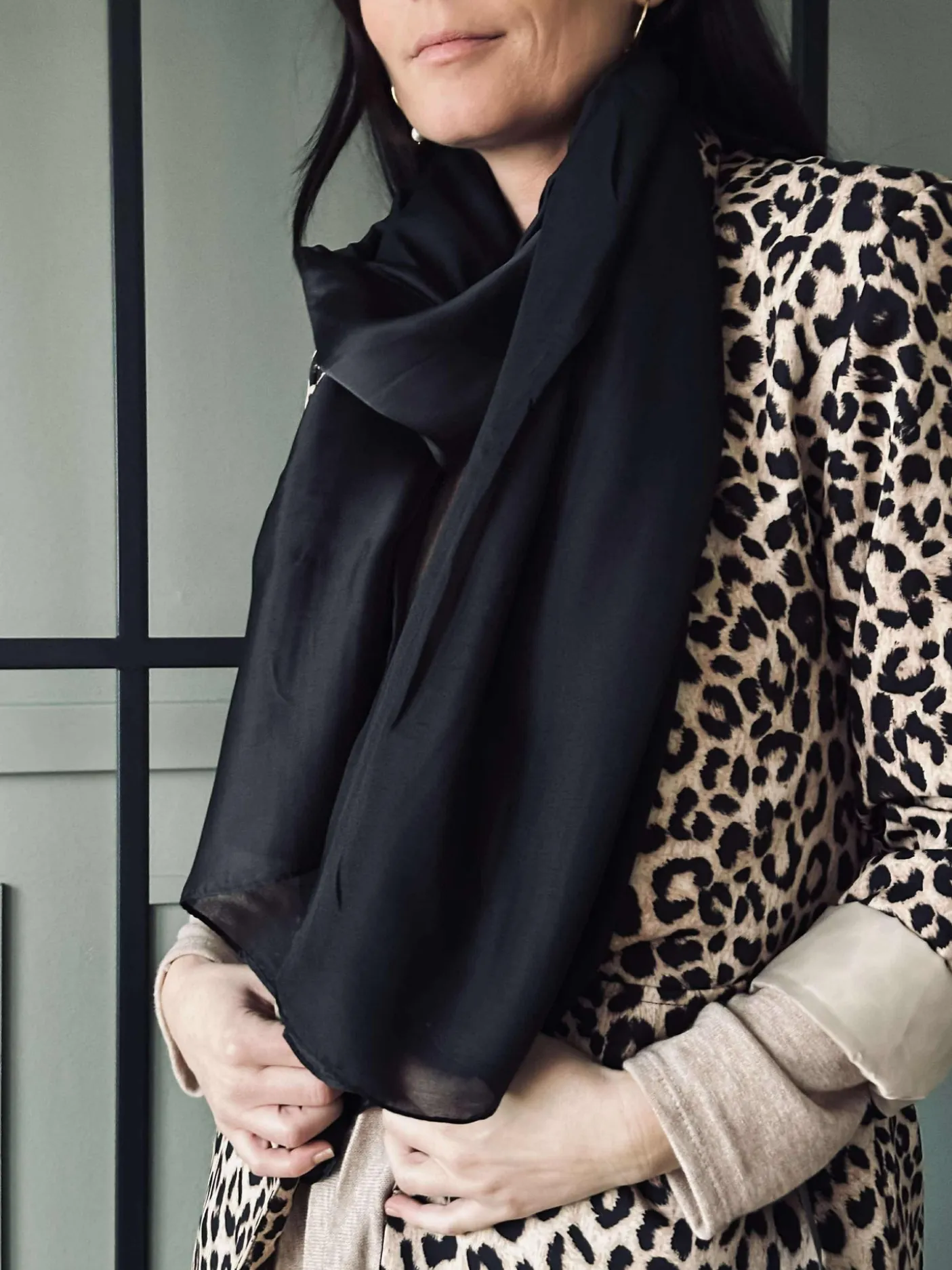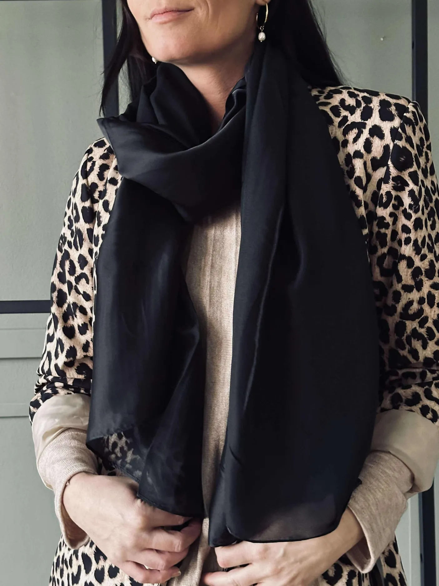 Tørklæde Silky Black er et klassisk, ensfarvet tørklæde i sort med et glansfuldt silkelook. Det bløde fald gør det nemt at style, uanset om du ønsker et roligt, minimalistisk udtryk eller et mere elegant finish til dit outfit.