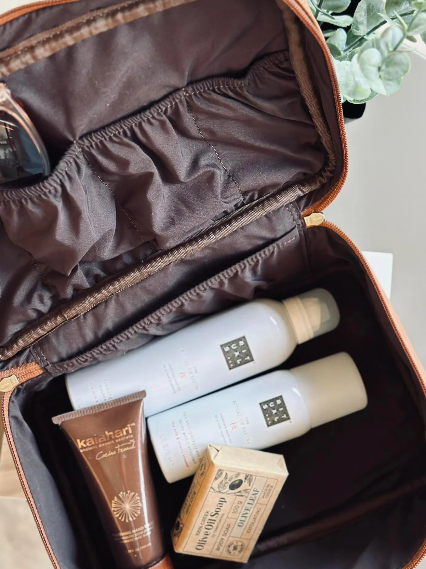 Rummelig toilettaske, som kan indeholde alt fra shampoo og parfume til make-up og accessoires. Tasken har flere gode rum og man får et fantastisk overblik, når tasken står åben.