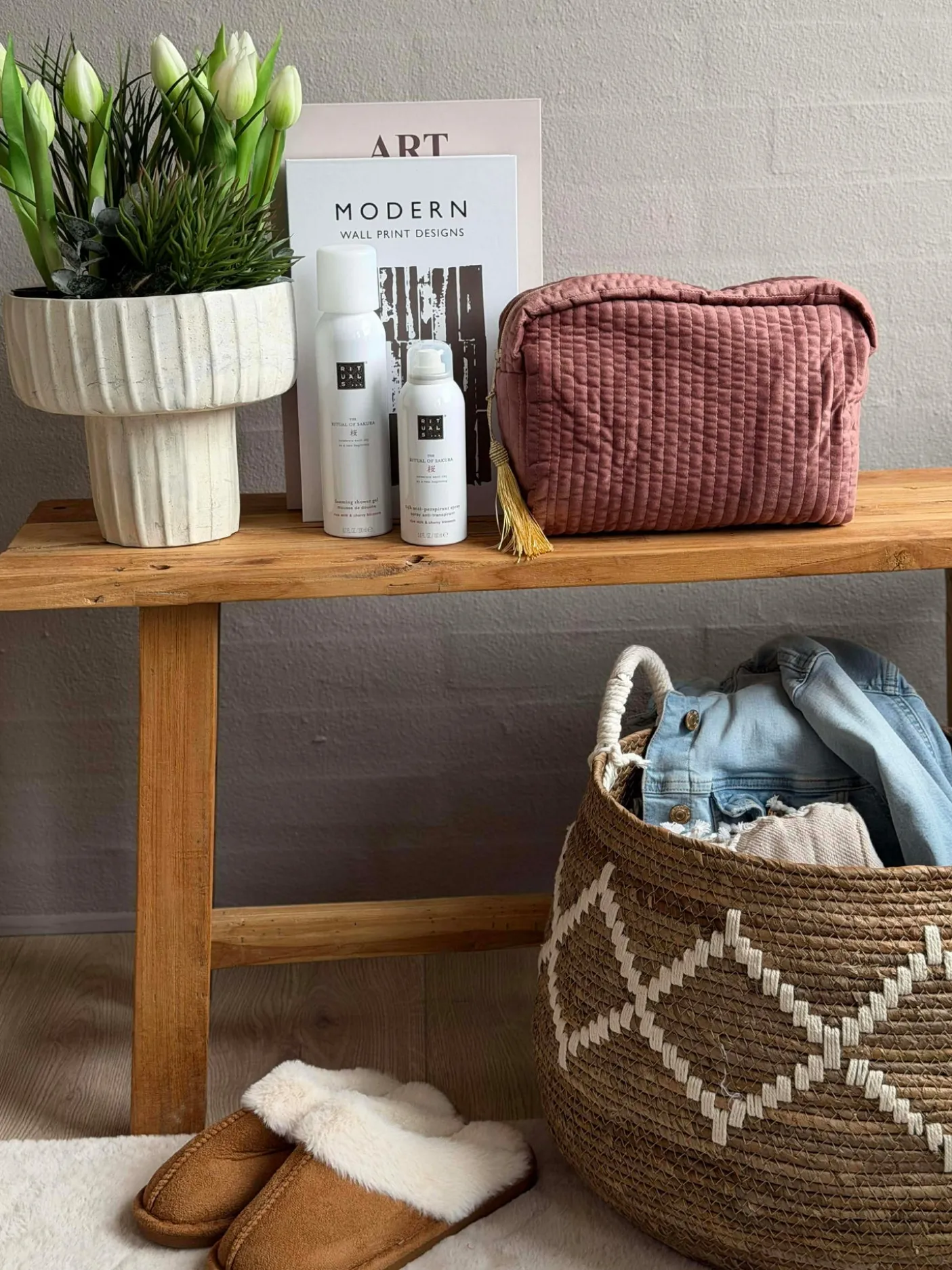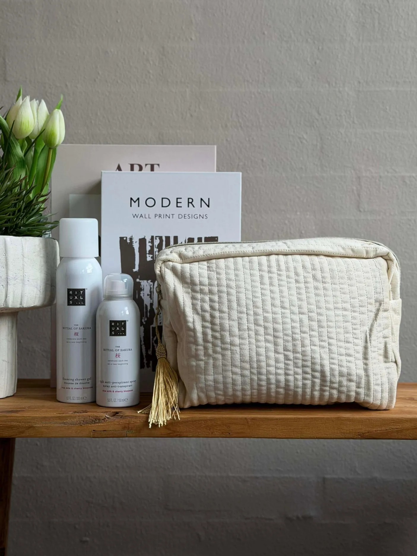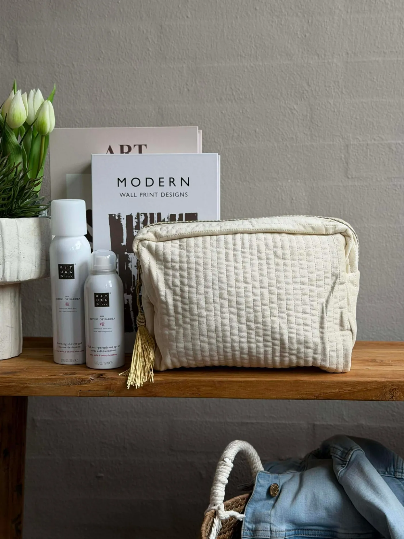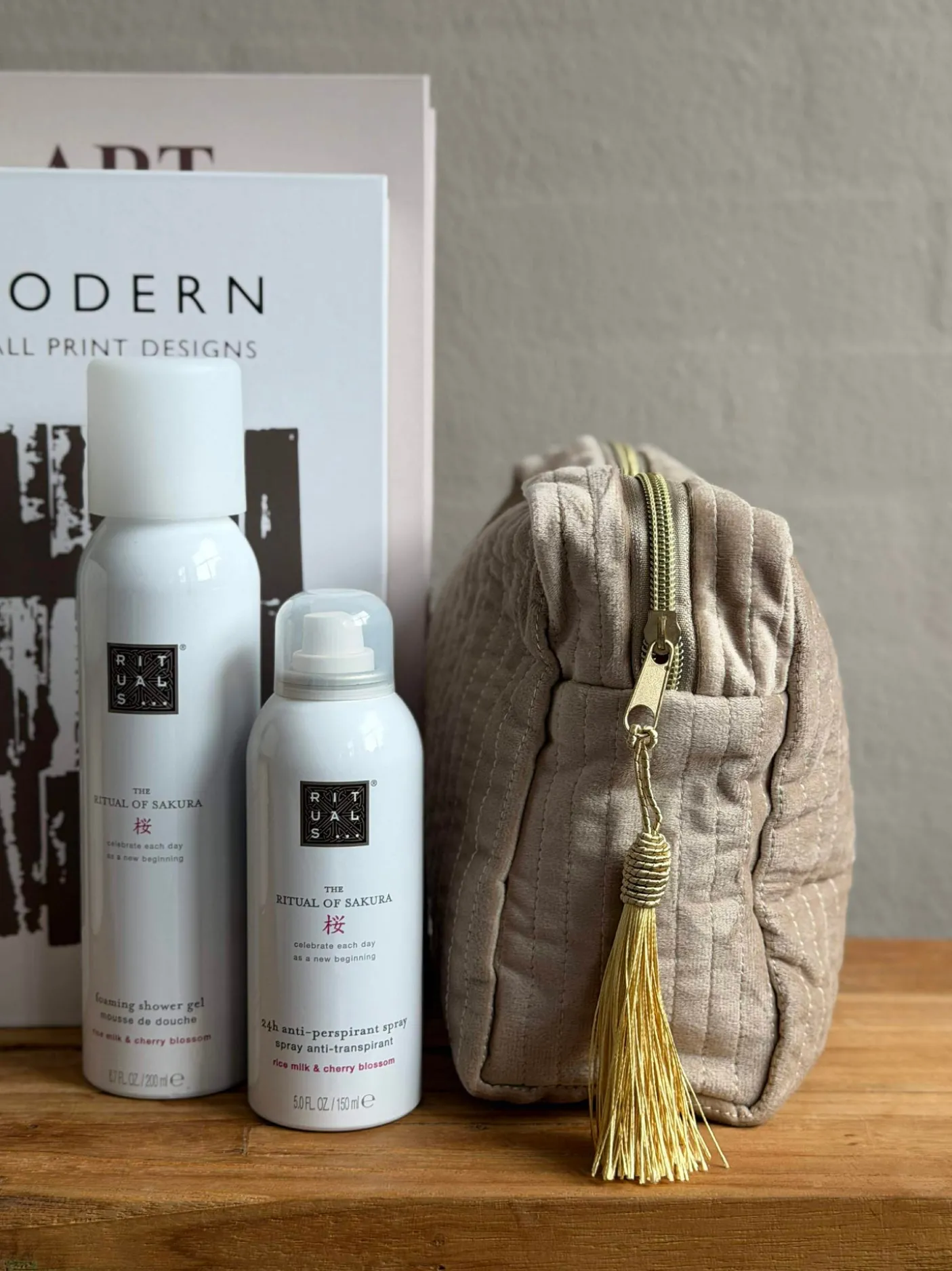 Toilettaske Gia er en blød toilettaske til opbevaring af toiletartikler på rejse eller i hjemmet. Udført i babyfløjl med målene L 26cm x H 20cm x D 7cm. Tilkøb evt. rejsetasken der matcher.