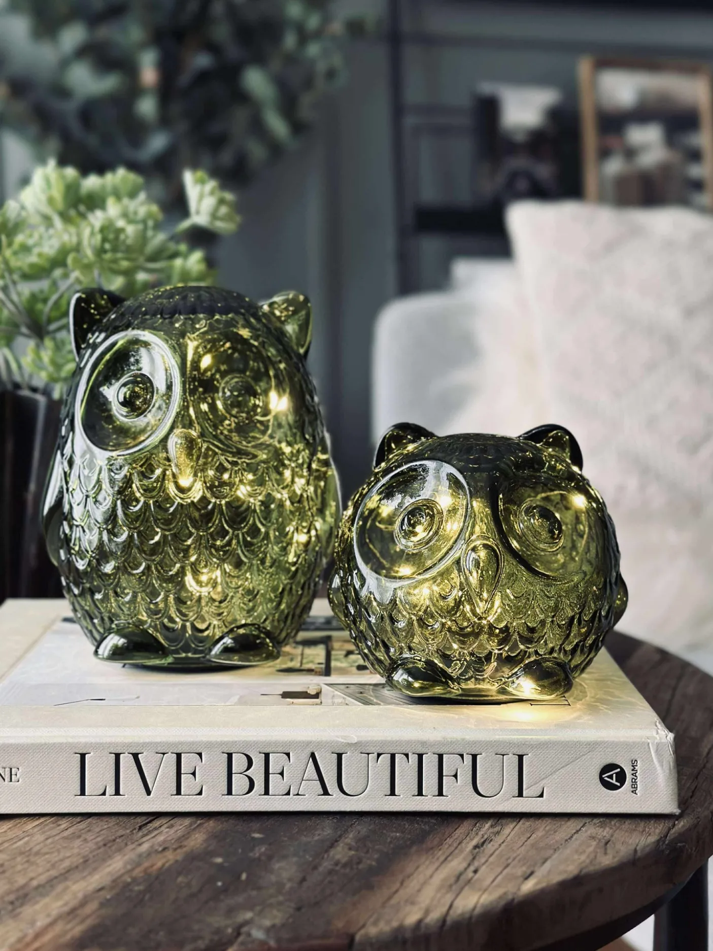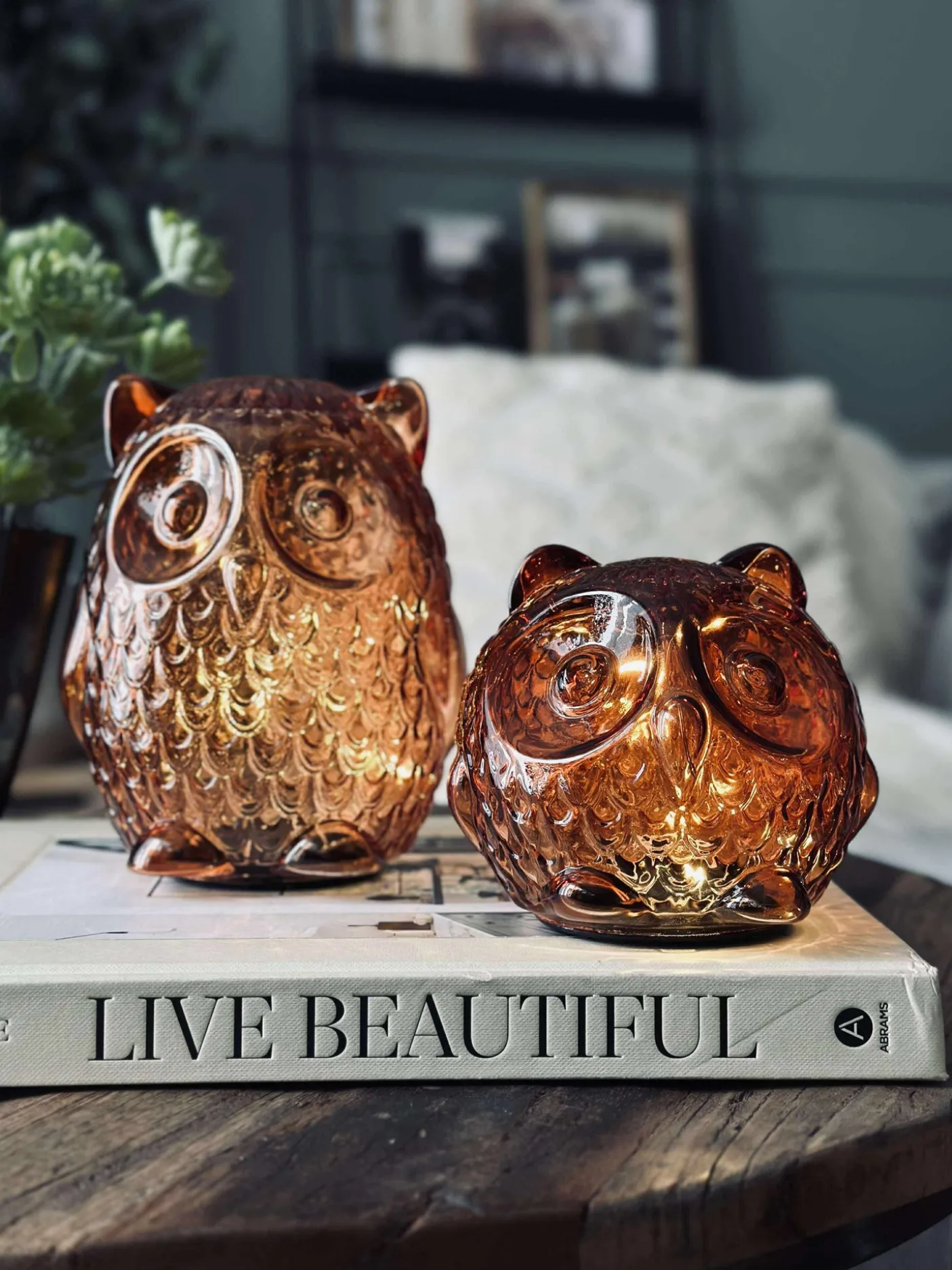 Hyggelig ugle lampe med led lys og timerfunktion.