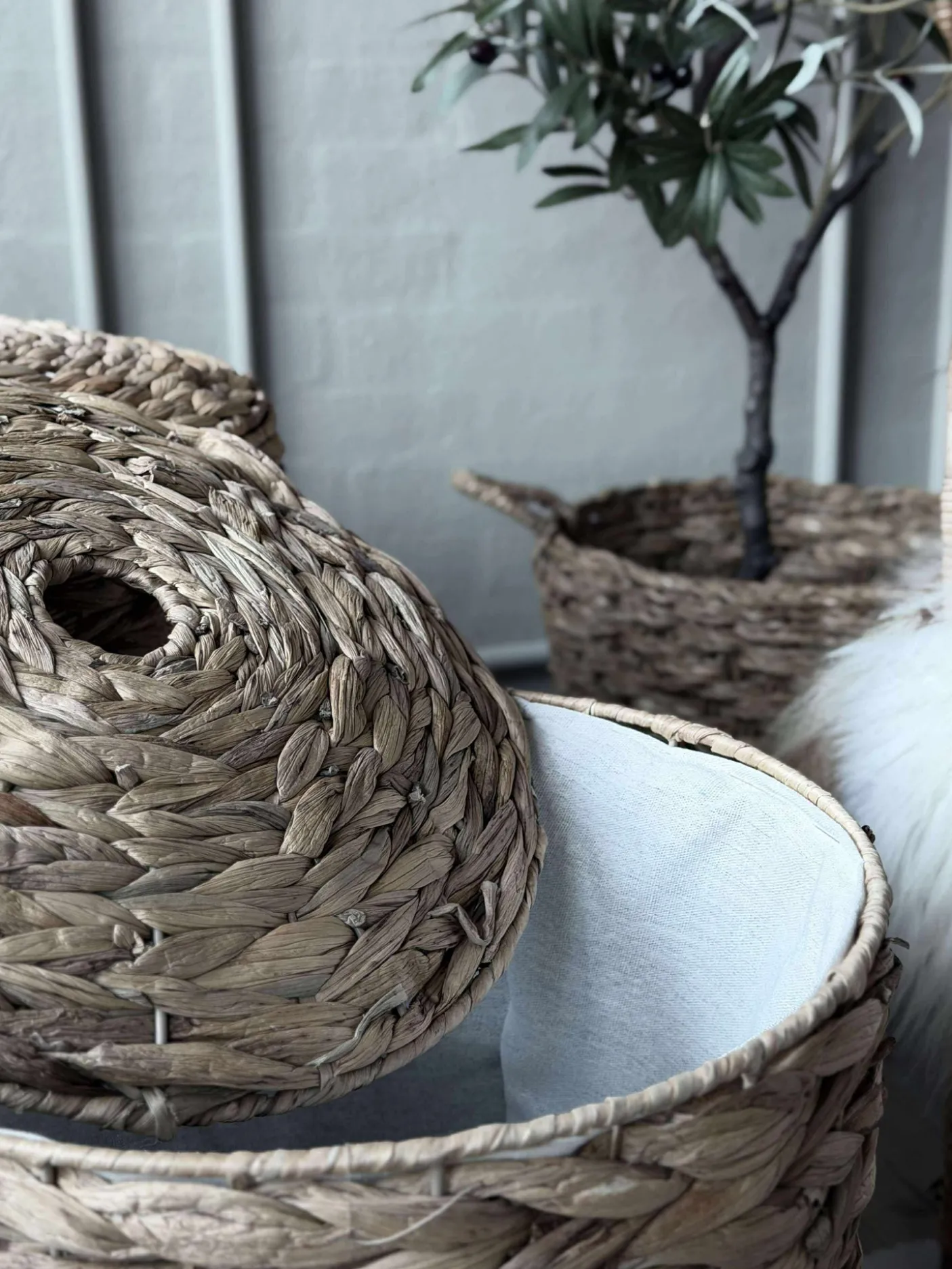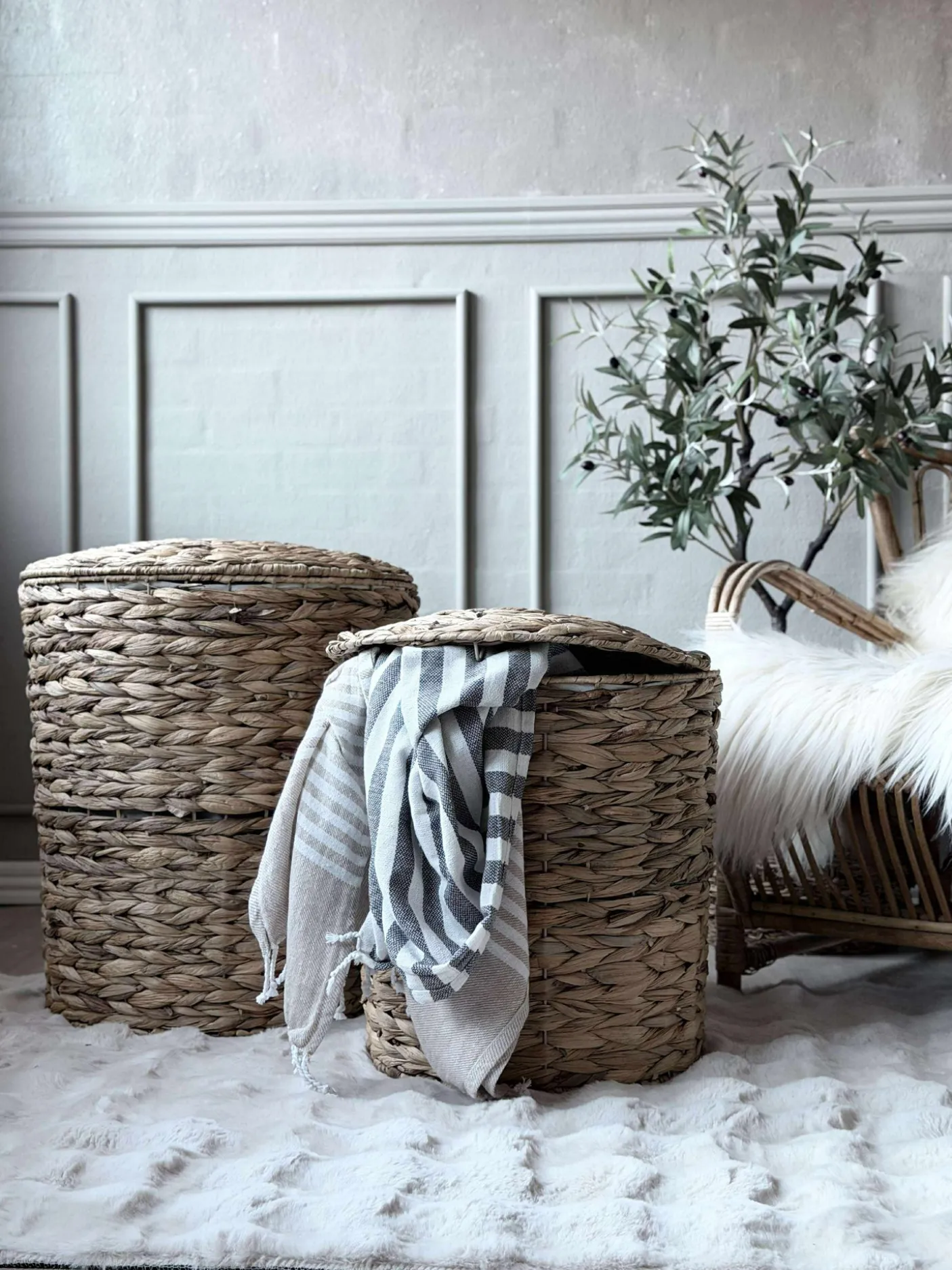 Lækker sæt med 2 vasketøjskurve i vandhyacint.
