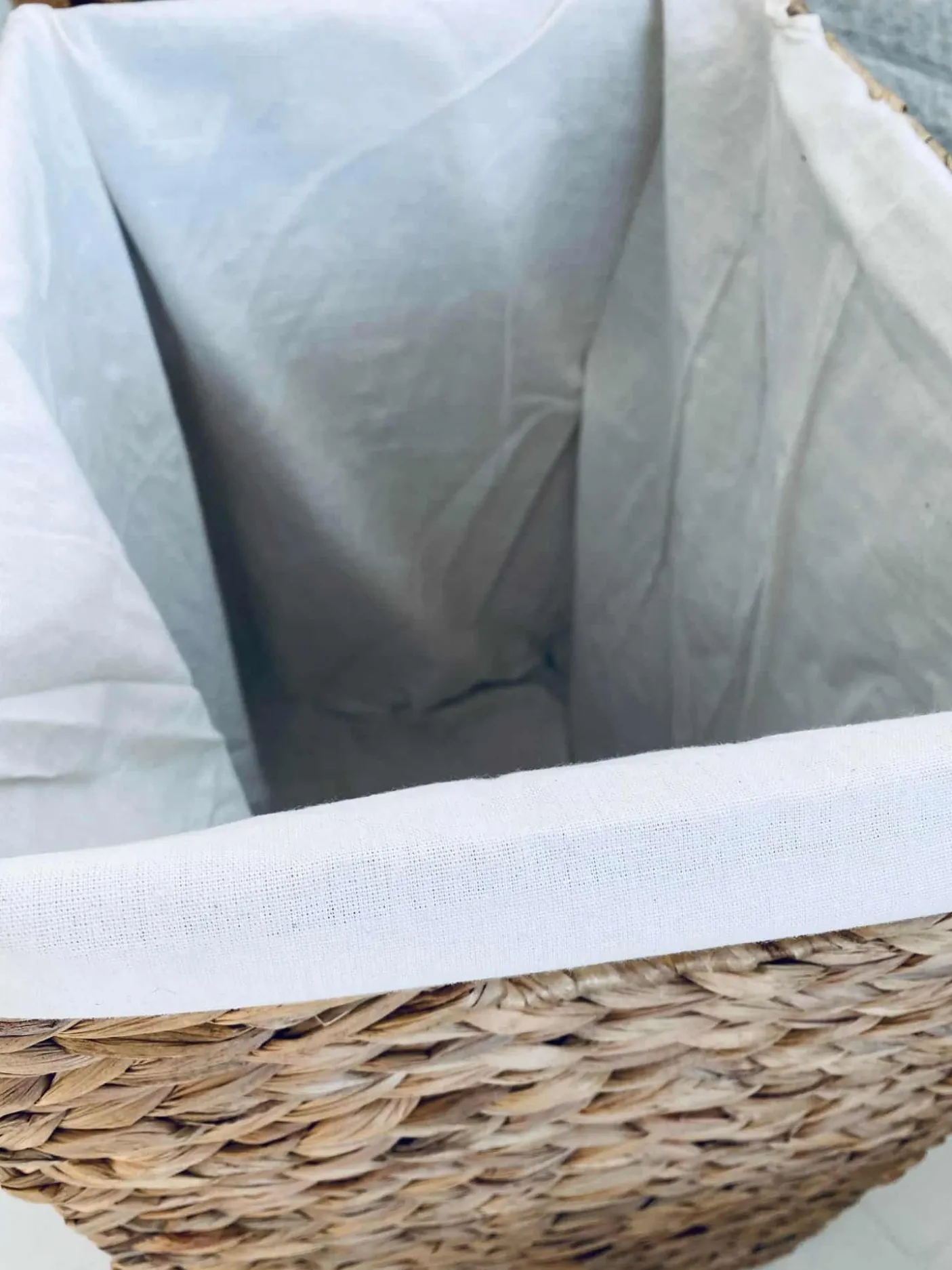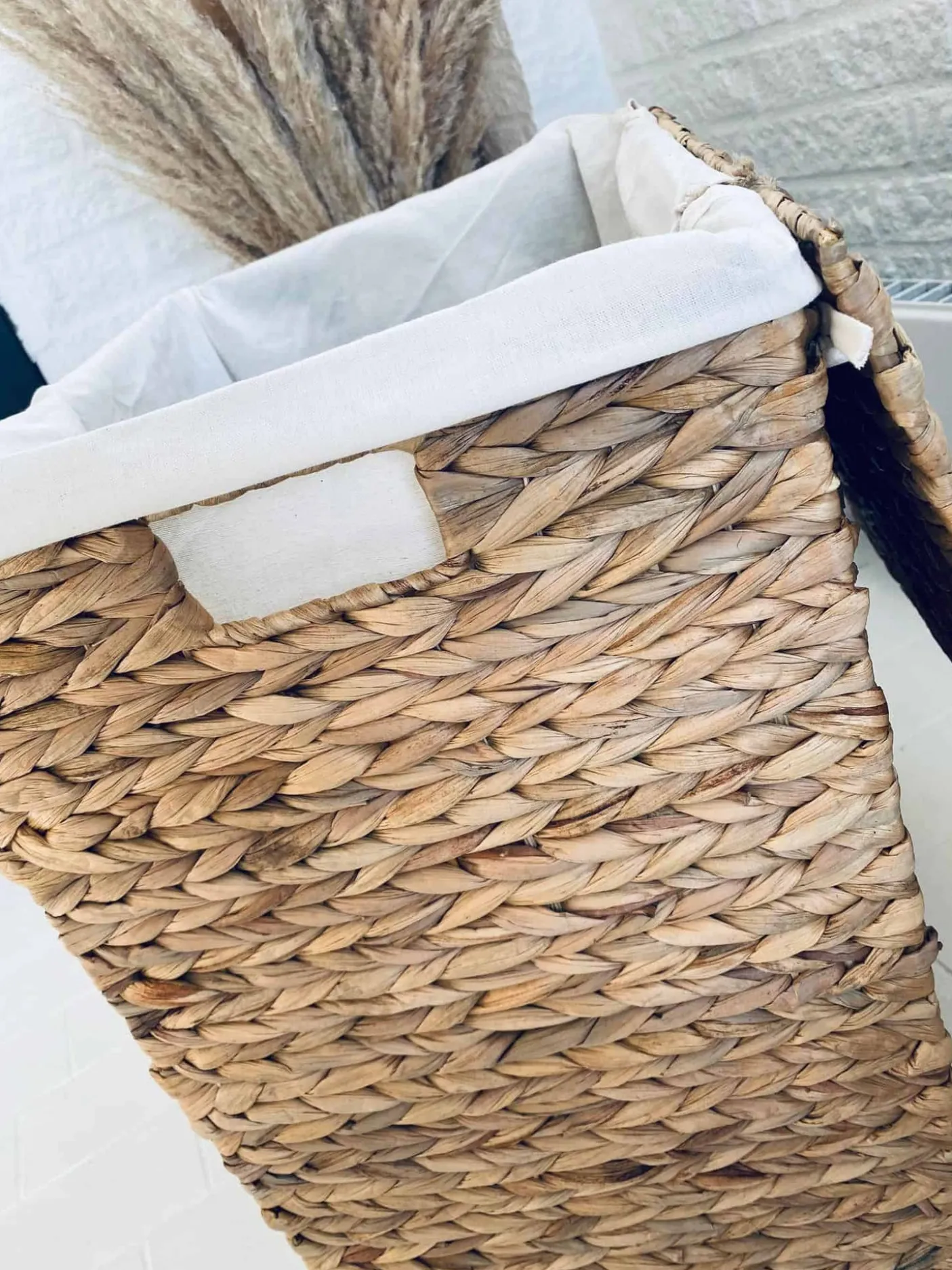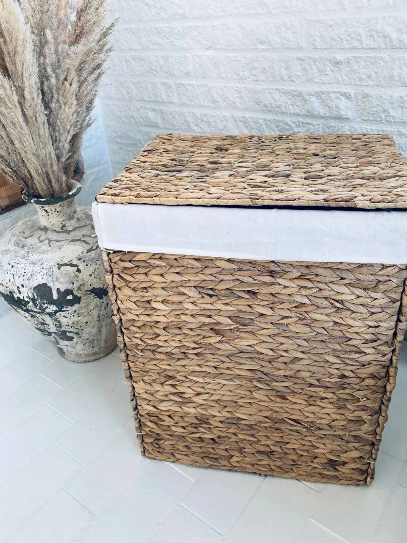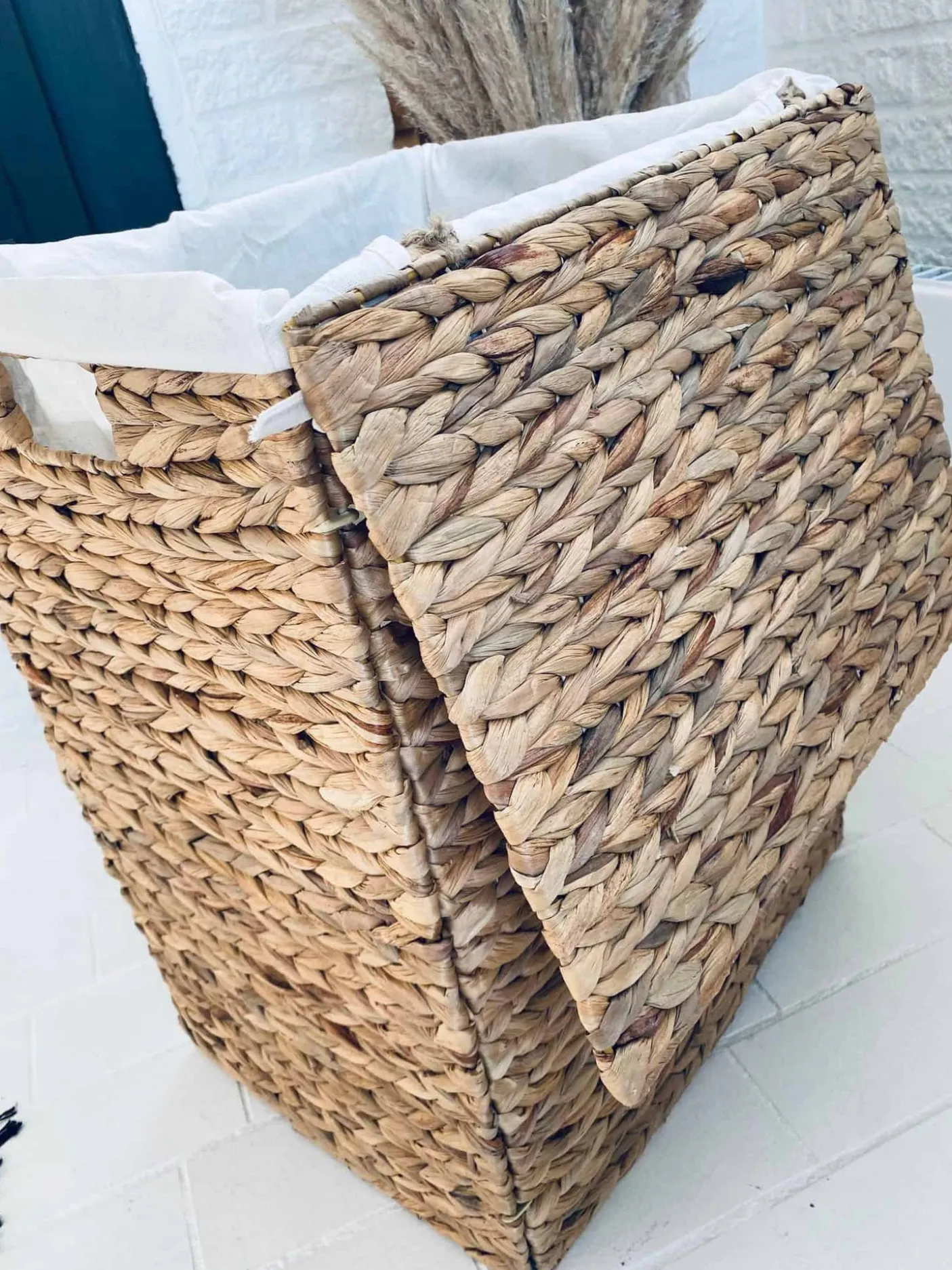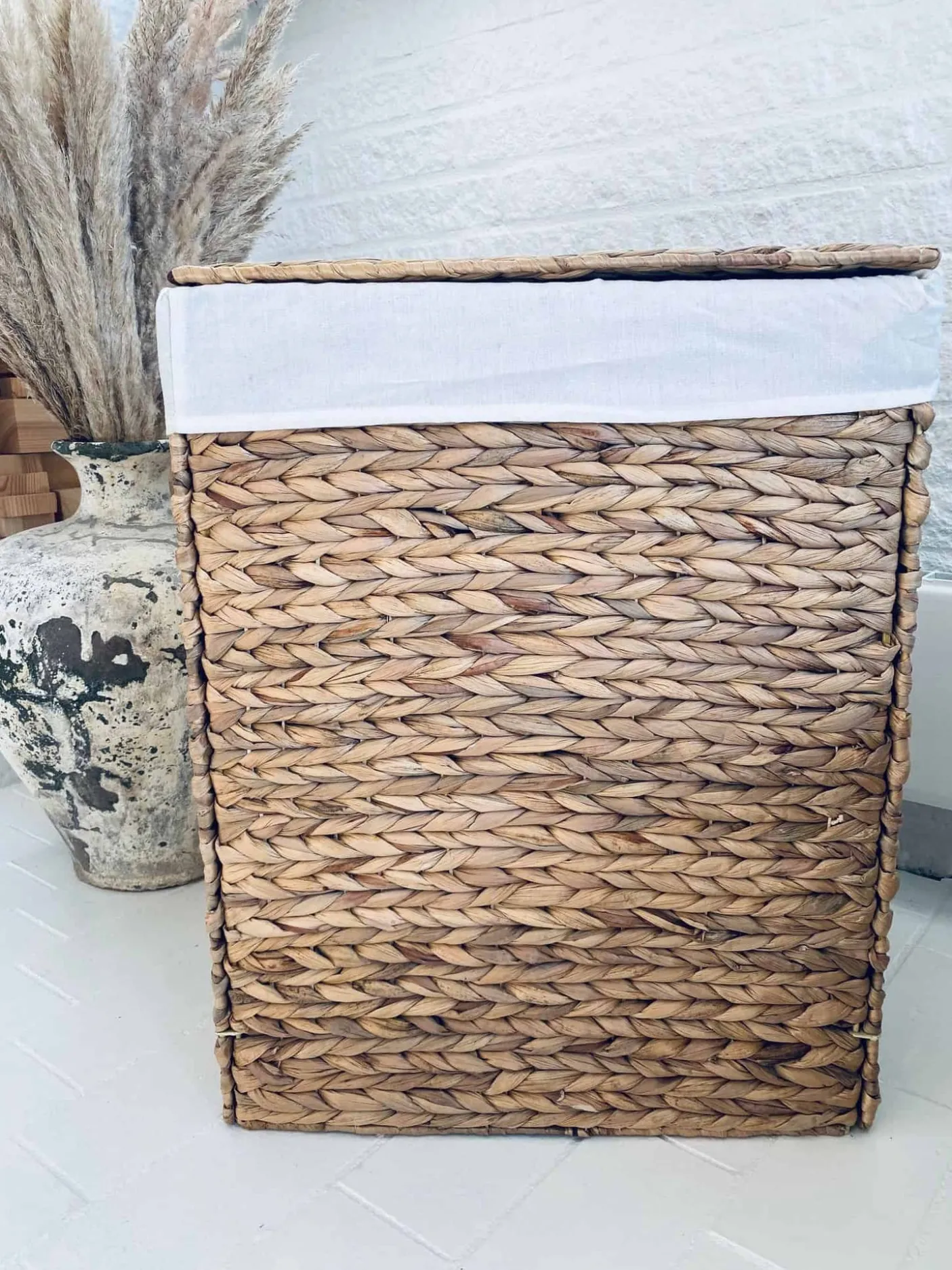Foldbar vasketøjskurv med låg i vandhyacinth inkl inderpose.