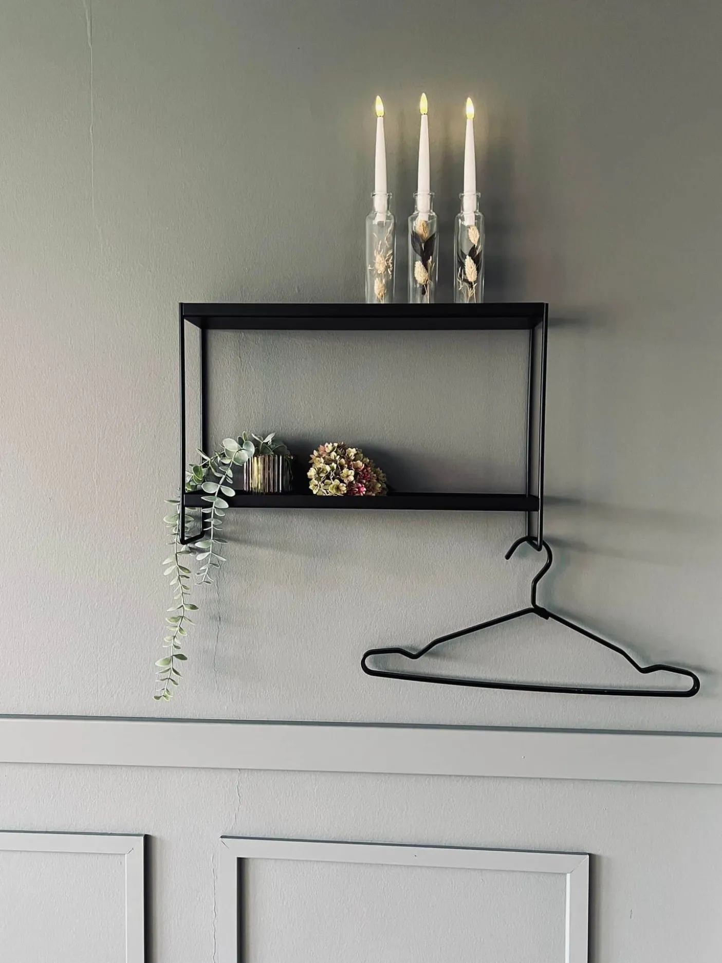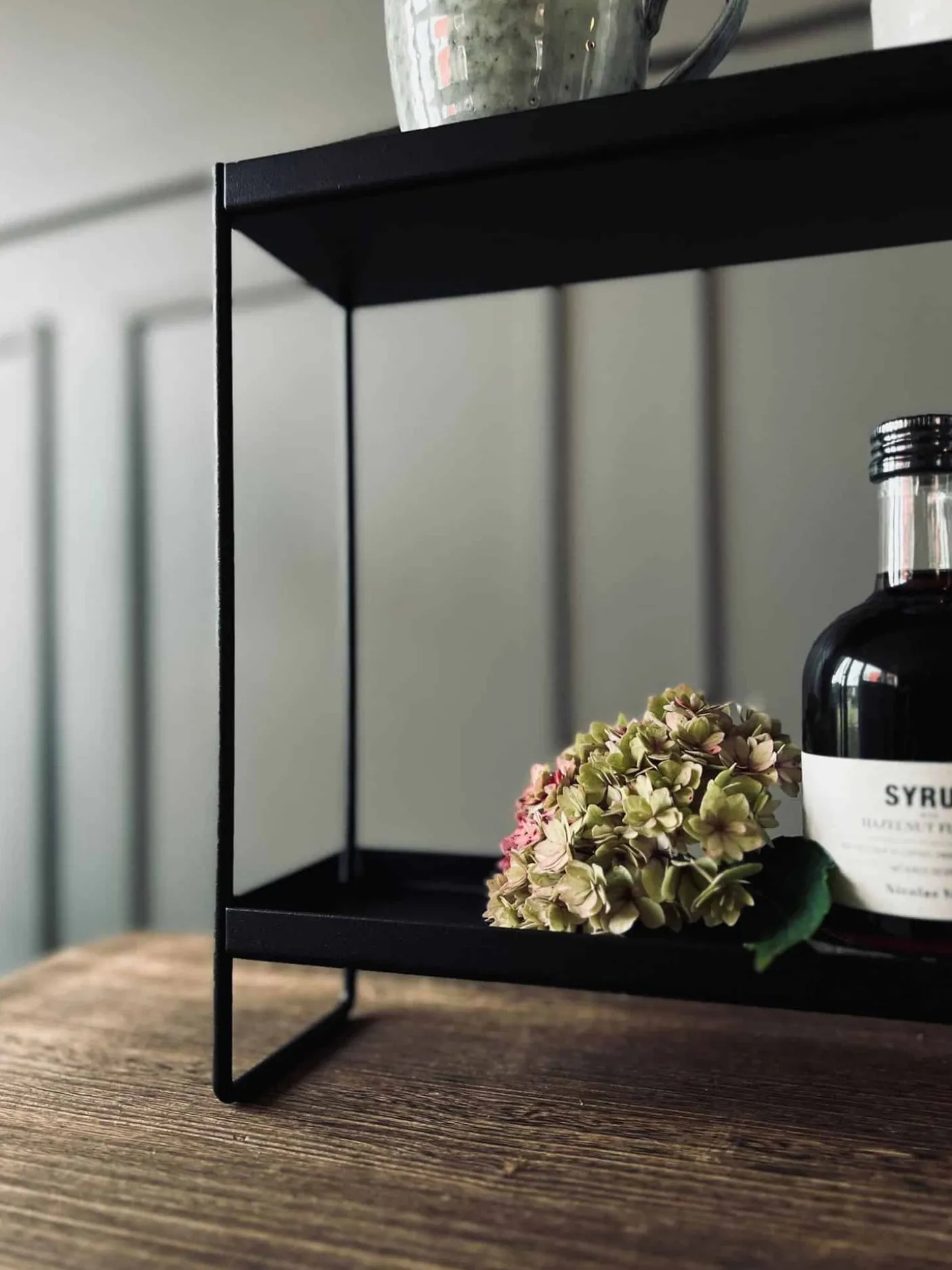 Har du brug for ekstra opbevaringsplads, men mangler du en stilren løsning? VIAMAJA Dobbelthylde i sort tilbyder en praktisk måde at organisere dine ting på uden at optage meget plads. Den er ideel til både vægophæng og bordplacering.