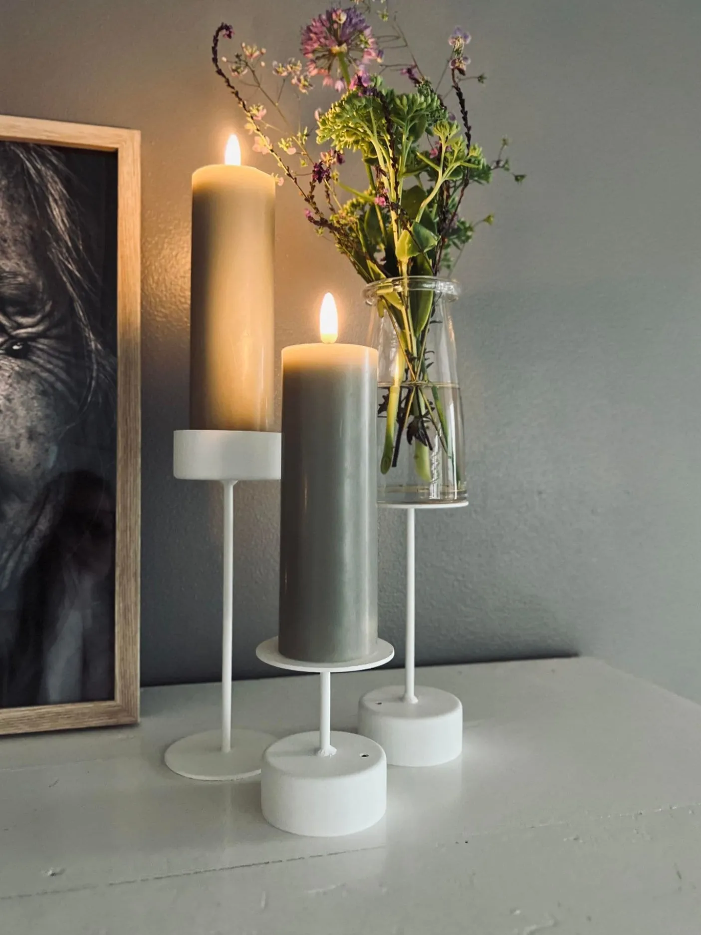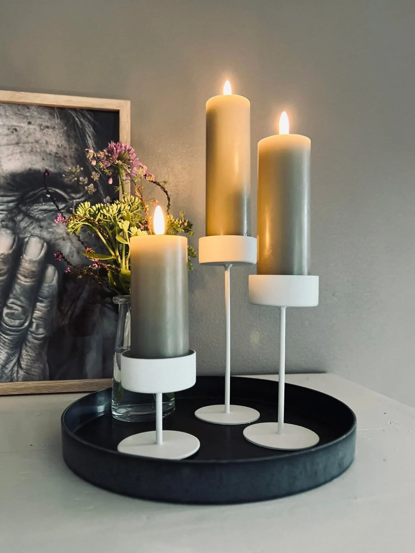 - Lysestagen fås i tre størrelser; denne er den mellemste