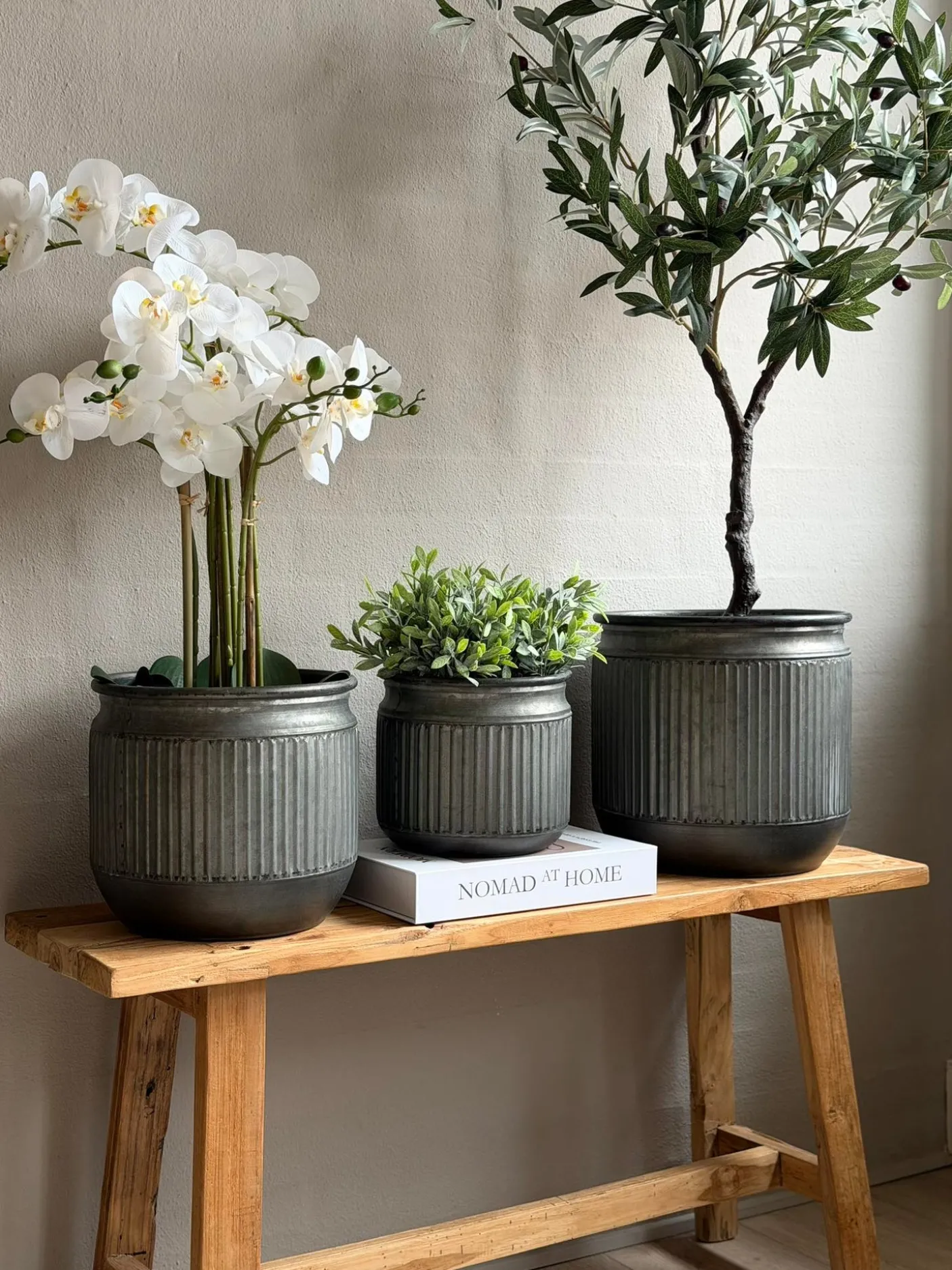 Sæt med 3 plantespande i zink.